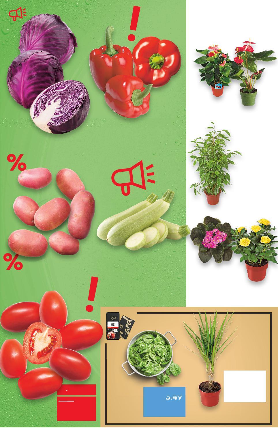 *Със звездичка са обозначени артикулите, които са специално предложение до изчерпване на наличностите. Kaufland не носи отговорност за печатни грешки. ** Посоченият брой е валиден за нашите най-големи хипермаркети. Kaufland не носи отговорност за печатни грешки. 12,99* само -20% 4,79 5,99 -23% 1,29 1,69 14,99* само -28% 1,99 2,79 5,99* само -26% 1,69 2,29 -30% 3,49 4,99 -22% 2,69 3,49само само -20% 3,99 с4,99 4,99 амо само Фикус Бенджамин Стайно растение Ø14 см бр. Червени чушки Калифорния Клас: I кг Червено зеле Клас: I кг Антуриум Стайно растение Ø14 cм бр. Тиквички Клас: I кг (1 кг = 1,99) Сентполия, Каланхое или Роза Стайно растение Ø12 см бр. Червени картофи Клас: I кг Домати Рома Клас: I кг Спанак листа Клас: I 500 г в опаковка (1 кг = 5,38) Драцена Маргината Стайно растение Ø10,5 см бр. Цена с KAUFLAND CARD Цена с KAUFLAND CARD от района на Пловдив от района на с. Чешнегирово ЦВЕТЯ ОТ ВТОРНИК 24.01. 30% Отстъпката с Kaufland Card e изчислена спрямо стандартната текуща цена, на която продуктът се предлага в хипермаркета. S13-BG-KW04-LFT-OGP_R-1000-10 13