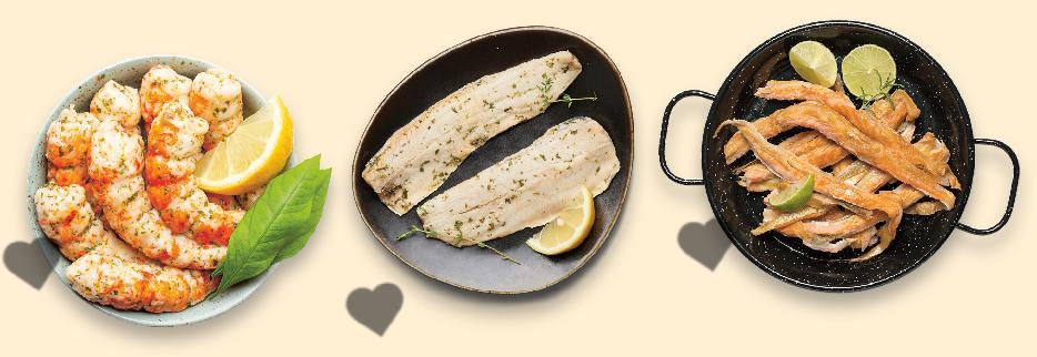 Цените са валидни за посочените на последна страница хипермаркети. Стоките се продават в количества, обичайни за едно домакинство. Всички цени са в лева с включен ДДС. Всички артикули се предлагат без декорация. Снимките са примерни. На последна страница може да видиш дали в твоя Kaufland предлагаме риба и морски деликатеси от витрина с обслужване или на самообслужване. -20% 11,99 14,99 -50% 16,99 33,99 -25% 14,99 19,99 -37% 16,99 26,99 -20% 23,99 29,99 -20% 31,99 39,99 -27% 7,99 10,99 -36% 18,99 29,99 Хек филе Улов: див улов в Аржентина размразено кг (1 кг = 11,99) Сельодка с градински подправки кг (1 кг = 14,99) Mариновани сурими кг (1 кг = 16,99) Фагри изчистенo, без люспи Улов: аквакултури в Гърция прясно кг (1 кг = 23,99) Сьомга котлет Улов: аквакултури в Норвегия пресен кг (1 кг = 31,99) Пушени коремчета от сьомга кг (1 кг = 16,99) Сурови скариди размер 30/60 бр./кг или 40/50 бр./кг Улов: аквакултури в Панама, Еквадор и Куба размразени кг (1 кг = 18,99) Скумрия с/без глава Улов: див улов в Северен Атлантически океан или Норвежко море размразена кг (1 кг = 7,99) РИБНИ ДЕЛИКАТЕСИ РИБА И МОРСКИ ДЕЛИКАТЕСИ СПЕЦИАЛНА ОПАКОВКА, ЗАПАЗВАЩА СВЕЖЕСТТА ДОСТАВКИ ОТ УТВЪРДЕНИ ПАРТНЬОРИ СВЕЖ УЛОВ ОТ БЛИЗО И ДАЛЕЧ съдържа Омега-3 мастни киселини изчистена, готова за готвене S22-BG-KW04-LFT-FIP_L-1000-10 22
