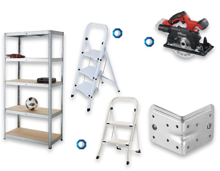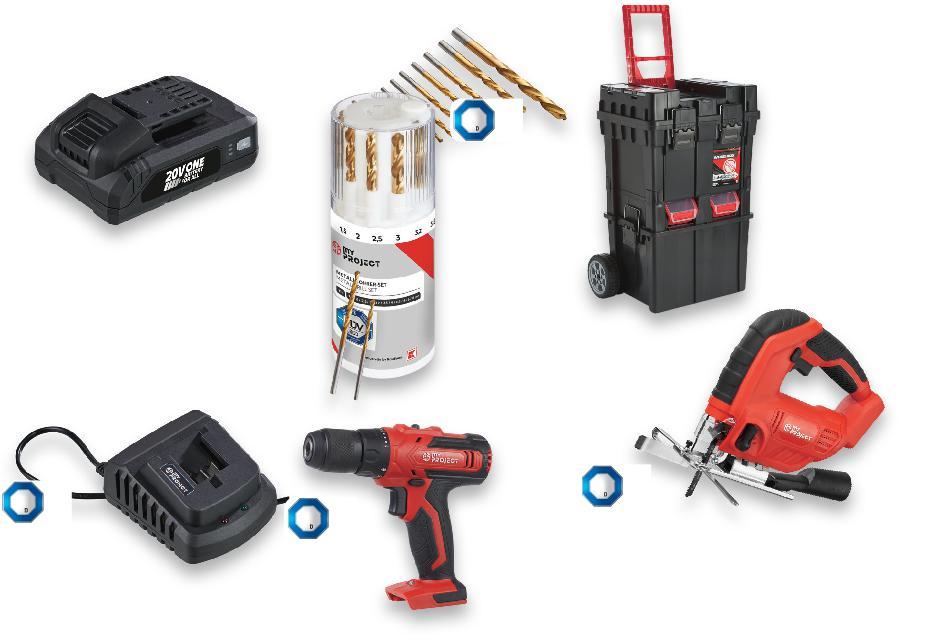 Цените са валидни за посочените на последна страница хипермаркети. Стоките се продават в количества, обичайни за едно домакинство. Всички цени са в лева с включен ДДС. Всички артикули се предлагат без декорация. Снимките са примерни. капацитет 2,0 Ah, 20 V MY PROJECT Акумулаторен циркулярен трион празен ход: 4000 об./ мин., ъгъл на рязане 0-45°, дълбочина на рязане при 90° до 48 мм и при 45° до 36 мм, без батерия и зарядно MY PROJECT Акумулаторен прободен трион празен ход: 0 – 3000 об./ мин., дължина на хода 22 мм, рязане в дърво до 80 мм, в алуминий до 12 мм и в метал до 5 мм, без батерия и зарядно MY PROJECT Акумулаторeн винтоверт празен ход степен 1: 0 - 400 об./мин. степен 2: 0 - 1400 об./мин., въртящ момент в метал 35 Nm и в дърво 25 Nm, без батерия и зарядно MY PROJECT Зарядно за батерии корпус от удароустойчива пластмаса, автоматично изключване след зареждане, време за зареждане 60 мин, 0,4 A, 20 V 59,99* само 39,99 само 34,99 само 11,99 само 5,99* 24,99 само само 69,99* само 39,99 79,99* само 3,99* само Сгъваема стълба метална, 3 нива, 46 x 104 x 75 см, натоварване до 150 кг 49,99* само 39,99* само СВЪМЕСТИМА С У Р ЕДИ 20VНА МАРКИТЕCOUNTRYS I D E ® И YMPROJECT® СВЪМЕСТИМА С У Р ЕДИ 20VНА МАРКИТЕCOUNTRYS I D E ® И YMPROJECT® СВЪМЕСТИМА С У Р ЕДИ 20VНА МАРКИТЕCOUNTRYS D E ® И YMPROJECT® MY PROJECT Бургии за метал, бетон или дърво, HSS стомана, различни размери MY PROJECT Батерия литиево-йонна, индикатор за ниво на зареждане, LED дисплей Стелаж 180 x 90 x 40 см, натоварване до 175 кг /на рафт/ MY PROJECT Куфар за инструменти с колела и дръжка, 4 отделни куфара за издърпване, 4 отделения в капака, 49,5 x 36 x 71 см MY PROJECT Ъглови планки 8 различни размера, 4 - 24 бр. в опаковка Сгъваема стълба 2 нива, 45,5 x 55,5 x 81 см, натоварване до 150 кг само капацитет 4,0 Ah ОТ ПОНЕДЕЛНИК, 16.01.2023 ДО НЕДЕЛЯ, 22.01.2023 S46-BG-KW03-LFT-WEEK_L-1000-10 46