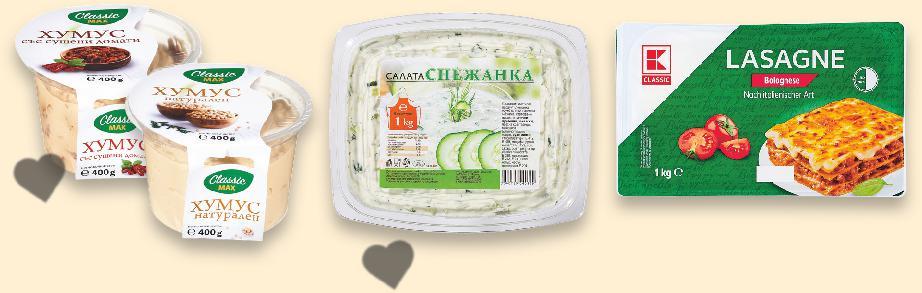 Отстъпката с Kaufland Card e изчислена спрямо стандартната текуща цена, на която продуктът се предлага в хипермаркета. *Със звездичка са обозначени артикулите, които са специално предложение до изчерпване на наличностите. Kaufland не носи отговорност за печатни грешки. -40% 2,79 4,69 -30% 4,49 6,49 9,99 само -20% 3,99 4,99 -40% 2,99 4,99 -25% 3,59 4,79 -32% 3,49 5,19 -50% 2,99 5,99 -21% 6,99 5,49 1 кг 1 кг -29% 8,49 11,99 само с11,99 амо SILVA Пелмени с пилешко или със свинско и телешко месо замразени 300 г (1 кг = 9,30) Пилешки крила замразени кг (1 кг = 4,49) Лазаня Болонезе по класическа италианска рецепта охладена 1 кг (1 кг = 9,99) Салата Снежанка 1 кг (1 кг = 3,99) CLASSIC MAX Хумус различни вкусове по специална арабска технология на приготвяне 400 г (1 кг = 7,48) DENNY Сладолед различни вкусове 400 г/ 900 мл (1 кг = 10,56) САМИ-М Панирани топени сиренца или Панирани пръчици моцарела замразени 250 г (1 кг = 13,96) Бланширани картофи Wedges замразени 1 кг (1 кг = 2,99) Хек замразен XXL опаковка около 1,5 кг кг (1 кг = 5,49) БОЛЯРСКИ БАНИЦИ прави или вити замразени 1 кг (1 кг = 8,49) Цена с KAUFLAND CARD ЗАМРАЗЕНИ ХРАНИ ДЕЛИКАТЕСИ ОТ ВИТРИНА НА САМООБСЛУЖВАНЕ S21-BG-KW03-LFT-FIP_R-1000-10 21