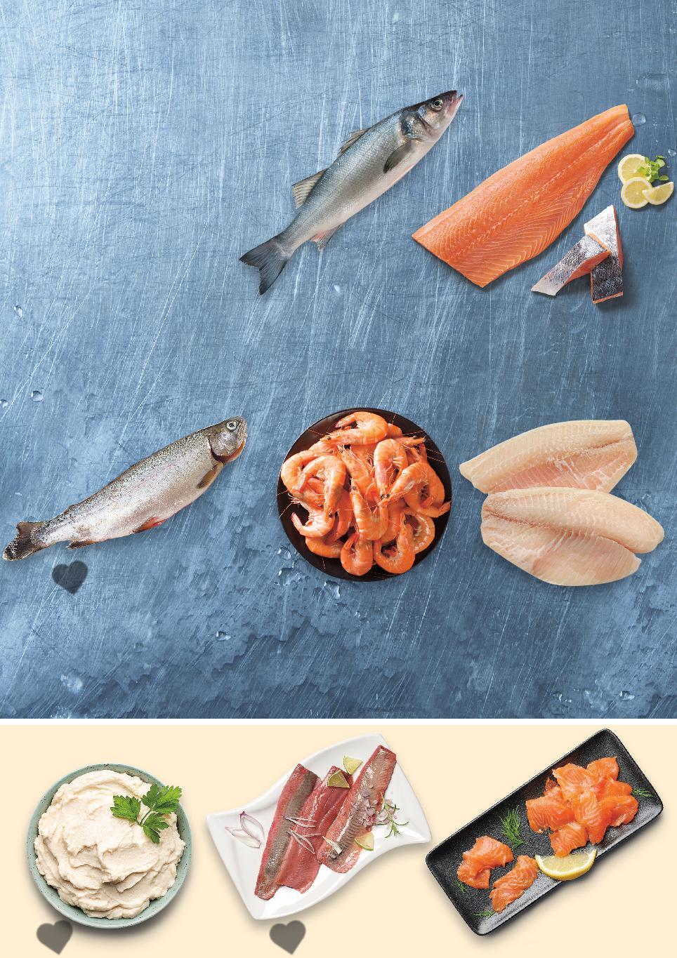 Цените са валидни за посочените на последна страница хипермаркети. Стоките се продават в количества, обичайни за едно домакинство. Всички цени са в лева с включен ДДС. На последна страница може да видиш дали в твоя Kaufland предлагаме риба и морски деликатеси от витрина с обслужване или на самообслужване. -26% 18,99 25,99 -45% 33,99 61,99 -31% 14,99 21,99 -45% 8,99 16,49 -30% 16,99 24,49 -20% 15,99 19,99 -26% 16,99 22,99 -30% 29,95 42,99 Скариди бланширани Улов: аквакултури в Колумбия и Венецуела морски деликатес, подходящ за паеля, паста и салати размразени кг (1 кг = 18,99) Розова сельодка филе кг (1 кг = 14,99) Хайвер класик кг (1 кг = 8,99) Тилапия филе Улов: аквакултури в Китай размразено кг (1 кг = 16,99) Сьомгова пъстърва изчистена Улов: рибно стопанство в България прясна кг (1 кг = 15,99) Филенца сьомгoва пъстърва студено-пушени кг (1 кг = 33,99) Сьомга филе с кожа Улов: аквакултури в Норвегия прясно кг (1 кг = 29,95) Лаврак изчистен Улов: аквакултури в Гърция/Турция фино и сочно месо пресен кг (1 кг = 16,99) РИБНИ ДЕЛИКАТЕСИ РИБА И МОРСКИ ДЕЛИКАТЕСИ СПЕЦИАЛНА ОПАКОВКА, ЗАПАЗВАЩА СВЕЖЕСТТА ДОСТАВКИ ОТ УТВЪРДЕНИ ПАРТНЬОРИ ПРЕСЕН УЛОВ ОТ БЛИЗО И ДАЛЕЧ съдържа Омега-3 мастни киселини пресен улов от Средиземноморието S20-BG-KW03-LFT-FIP_L-1000-10 20