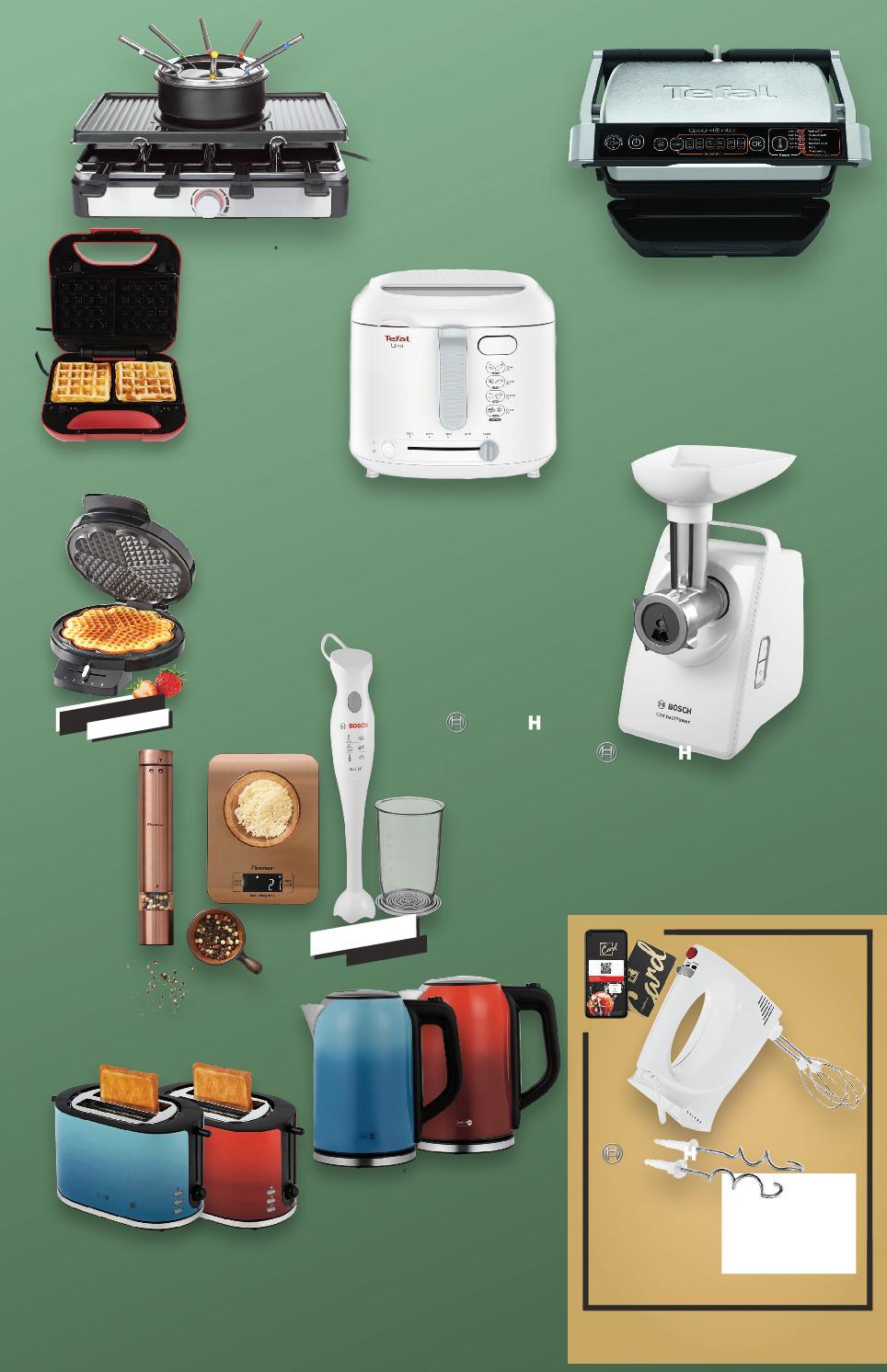 Отстъпката с Kaufland Card e изчислена спрямо стандартната текуща цена, на която продуктът се предлага в хипермаркета. *Със звездичка са обозначени артикулите, които са специално предложение до изчерпване на наличностите. Kaufland не носи отговорност за печатни грешки. 3 ГОДИНИ ГАРАНЦИЯ 3 ГОДИНИ ГАРАНЦИЯ 3 И ГАРАНЦИЯ 3 ГОДИНИ ГАРАНЦИЯ 3 ГОДИНИ ГАРАНЦИЯ 3 ГОДИНИ ГАРАНЦИЯ 3 ГОДИНИ ГАРАНЦИЯ 3 ГОДИНИ ГАРАНЦИЯ ОДИНИ ГАРАНЦИЯ Г 3 ГОДИНИ ГАРАНЦИЯ 3 ГОДИНИ ГАРАНЦИЯ 139,90* само -41% 34,99 59,99 -25% 29,99 39,99 -33% 219,90 329,90 -17% 139,90 169,90 44,99* 54,99* само само 79,99 само 54,99* само -33% 39,99 59,99 само 15,99* само Раклет грил с фондю с оребрена грил плоча за интензивен аромат на грил, купа за фондю 1,6 л, противоплъзгащи крачета, 1400 W Пасатор MSM6B150 със съд за разбиване с мерителна скала, 300 W Гофретник незалепващо покритие, 1200 W Сандвич тостер 3 в 1 свалящи се плочи с незалепващо покритие, автоматично регулиране на температурата Електрическа кана за вода корпус от неръждаема стомана, завъртане на 360°, 1,7 л 1850 - 2200 W Тостер корпус от неръждаема стомана, бутони с LED осветление, 800 - 950 W Mесомелачка MFW3520W капацитет 1,3 кг/мин, допълнителни приставки за паста и сладки, 1500 W Скара Optigrill GC706 плочи с незалепващо покритие, 6 програми, тава за отцеждане на мазнините, 2000 W Фритюрник UNO FF2031 до 1 кг продукти, регулируем термостат 150° - 190° C, 1600 W BESTRON Дигитална кухненска везна 16,3 x 22 x 1,5 см или Електрическа мелничка за подправки Миксер MFQ3010 2 скорости 300 W Цена с KAUFLAND CARD S35-BG-KW03-LFT-NFP3_R-1000-10 35