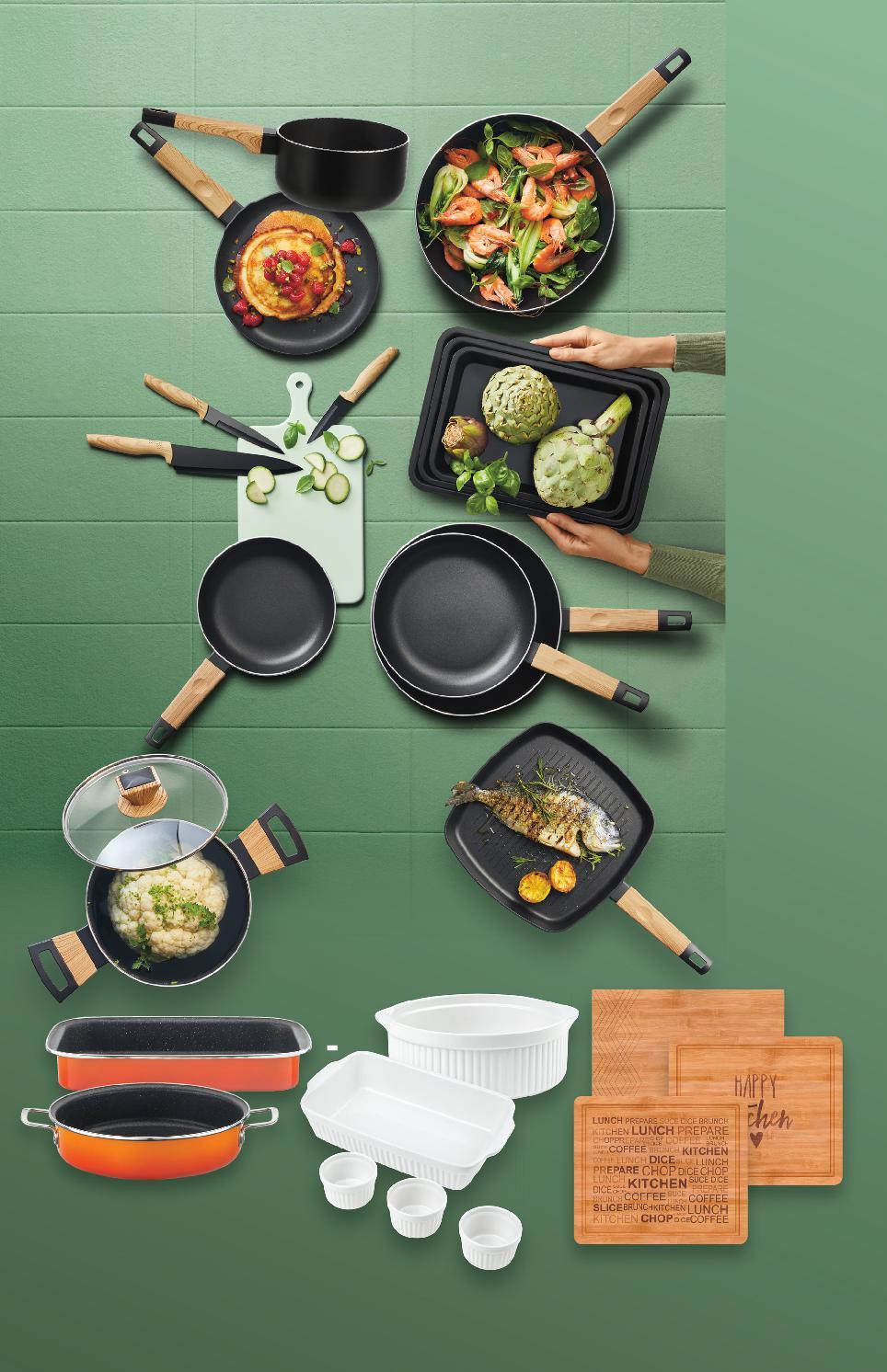 Цените са валидни за посочените на последна страница хипермаркети. Стоките се продават в количества, обичайни за едно домакинство. Всички цени са в лева с включен ДДС. Всички артикули се предлагат без декорация. Снимките са примерни. ГОТВИ СЪС СТИЛ 24,99* само 14,99* само 19,99* само 34,99* само 35,99* само 21,99* само 45,99* 29,99* Ø 24 x 5,8 cm 31,99* само 11,99* само -35% 44,89 69,89 9,99* само 47,89 3 броя 3 части BERGNER Уок тиган Earth Black алуминий, Ø28 х 7,5 см BERGNER Тиган за палачинки Earth Black или Касерола Earth Black алуминий, тиган Ø24 x 2 см касерола Ø16 см 1 бр. BERGNER Грил тиган Earth Black алуминий, 28 x 28 x 4,5 см BERGNER Тиган Earth Black алуминий BERGNER Комплект ножове Earth Black нож на главния готвач, универсален или нож за белене BERGNER Комплект тави Earth Black малка 28,5 x 19,5 x 3,5 см, средна 31,5 x 21,5 x 3,5 см голяма 34,5 x 24 x 3,5 см Форма за печене или за суфле кръгла или правоъгълна, 1 бр. или 3 бр. Дъска за рязане бамбук, различни размери Тава 2 в 1 Медитеранео само Ø 28 x 6,4 cm BERGNER Тенджера Earth Black алуминий, Ø20 x 15,5 см само Ø24 x 13,5 см 73,89 -35% 40 х 25 см Ø28 см ОТ ПОНЕДЕЛНИК, 16.01. S34-BG-KW03-LFT-NFP3_L-1000-10 34