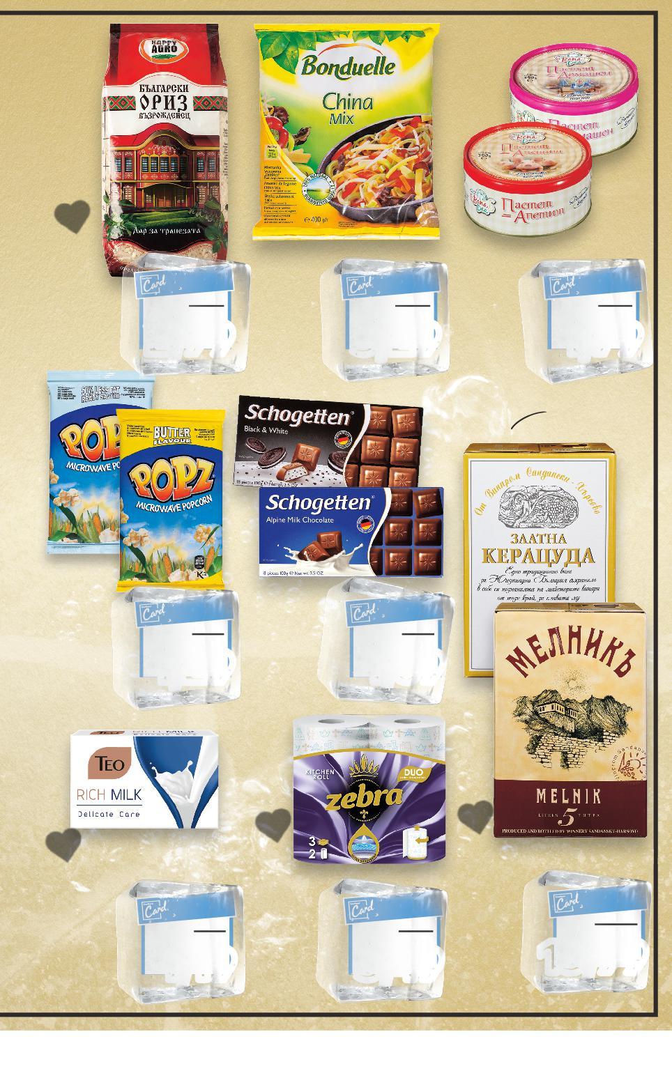 *Със звездичка са обозначени артикулите, които са специално предложение до изчерпване на наличностите. Kaufland не носи отговорност за печатни грешки.-- -5 литра долината на рСтрума *Със звездичка са обозначени артикулите, които са специално предложение до изчерпване на наличностите Kaufland не носи отговорност за печатни грешки са с с с с с с BONA DEA Пастет различни видове 300 г (1 кг = 5,97) BONDUELLE Китайски микс замразен 400 г (1 кг = 8,23) HAPPY AGRO Ориз Възрожденец 1 кг (1 кг = 2,99) САНДАНСКИ МЕЛНИКЪ ИЛИ ЗЛАТНА КЕРАЦУДА Червено или бяло вино 5 л BIB (1 л = 2,80) POPZ Пуканки с масло или с по-малко мазнина 80 - 90 г (1 кг = от 14,34) TEO RICH MILK Сапун различни видове 90 г (1 кг = 13,23) ZEBRA Кухненска ролка Duo 100% целулоза, трипластова 2 бр. в опаковка (1 бр. = 1,75) SCHOGETTEN Шоколад различни видове 100 г (1 кг = 16,90) Цена с KAUFLAND CARD Цена с KAUFLAND CARD Цена с KAUFLAND CARD Цена с KAUFLAND CARD Цена с KAUFLAND CARD Цена с KAUFLAND CARD Цена с KAUFLAND CARD Цена с KAUFLAND CARD S9-BG-KW03-LFT-PREIS_R-1000-10 9