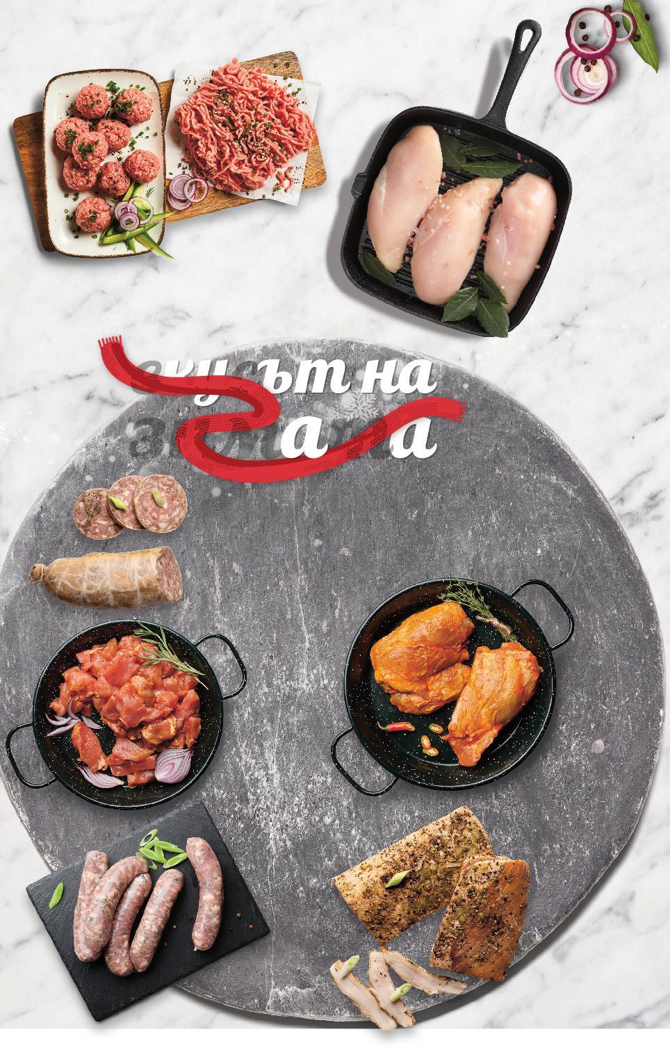 Цените са валидни за посочените на последна страница хипермаркети Стоките се продават в количества, обичайни за едно домакинство Всички цени са в лева с включен ДДС. Всички артикули се предлагат без декорация. Снимките са примерни. ните ПРЕДЛОЖЕНИЯ СПЕЦИАЛНОЗА ЗИМАТА СЕЗОННИ 20 НАД -18% 10,99 13,49 -11% 7,99 8,99 -17% 6,99 8,49 11,49 само 10,99* само 10,99* само -17% 5,99 7,29 Пилешко филе от гърди прясно, охладено кг (1 кг = 10,99) Свинско бабе за директна консумация кг (1 кг = 7,99) Пушена сланина с праз кг (1 кг = 6,99) Празеница кг (1 кг = 11,49) Свински джолан с чесън по северняшки кг (1 кг = 10,99) Свинско месо за кавърма кг (1 кг = 10,99) Свинска кайма с подправки кг (1 кг = 5,99) МЕСО ОТ ВИТРИНА С ОБСЛУЖВАНЕ S12-BG-KW03-LFT-BED1_L-1000-10 12