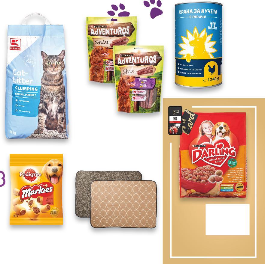 *Със звездичка са обозначени артикулите, които са специално предложение до изчерпване на наличностите. Kaufland не носи отговорност за печатни грешки. 2 кг 3 кг 10 кг ЕКСТРА КАЧЕСТВО ЛЮБИМЦИТЕ ЗАСЛУЖАВАТ -32% 4,69 6,99 -23% 0,99 1,29 -31% 2,39 3,49 6,99* само -23% 2,29 2,99 2,69 само -35% 1,79 2,79 -25% 5,59 7,49 -35% 8,99 13,99 само Суха храна за котки видоверазлични 2 кг (1 кг = 2,35) коткиХранаDANTEза с вкус пилеговеждонаили 415 г (1 кг = 2,39) коткиХранаPOUCHWHISKASза различни вкусове 4 бр. x 85 г или 4 бр. x 100 г (1 кг = от 5,98) Одеяло любимцидомашниза 70бързосъхнещоx100cм заЛакомствоPEDIGREEкучета различни видове 130 - 200 г (1 кг = от 11,45) MEGA кучетаХранаPETза с птиче говеждоилимесо 1240 г (1 кг = 2,17) кучетаЛакомствоADVENTUROSза различни видове ниско съдържание на оцветителибезмазниниизкуствени 90 - 120 г (1 кг = до 19,89) тоалетнаКотешка 10 кг (1 кг = 0,56) СухаDARLINGхрана за 3видоверазличникучетакг(1кг=3,00) Цена CARDKAUFLANDс ЗА ДОМАШНИ ЛЮБИМЦИсуперабсорбиращабездабавеназахар и консерванти S35-BG-KW38-LFT-WPR_R-1000-10 35