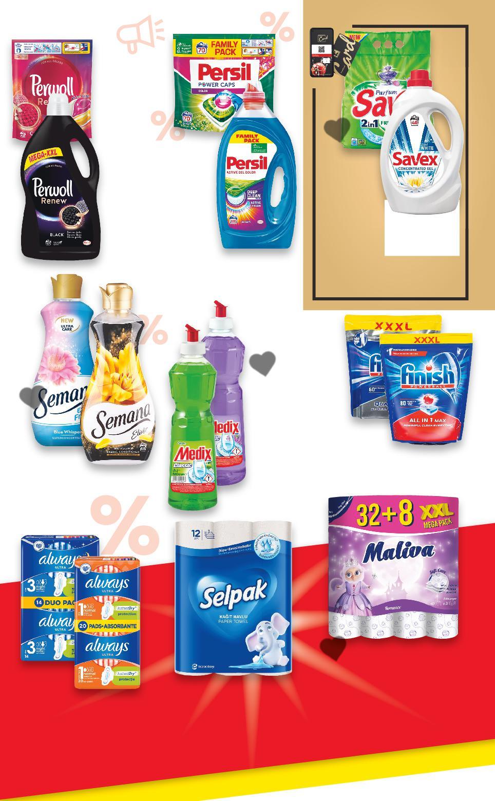 Отстъпката с Kaufland Card e изчислена спрямо стандартната текуща цена, на която продуктът се предлага в хипермаркета. Цените са валидни за посочените на последна страница хипермаркети. Стоките се продават в количества, обичайни за едно домакинство. Всички цени са в лева с включен ДДС. Всички артикули се предлагат без декорация. Снимките са примерни. 12 броя 60 / 70 пранета 1 изпиране = 0,45 / 0,39 лв. 66 / 68 пранета 1 изпиране = 0,10 / 0,09 лв. 67 пранета 1 изпиране = 0,23 лв.42 пранета 1 изпиране = 0,36 лв. 100 пранета 1 изпиране = 0,27 лв. 40 пранета 1 изпиране = 0,27 лв. ПРОМОПАКЕТ 16,79* само само 14,79 10,99* само 3,99 само 0,89 само 23,99 само 26,99* -32% 5,99 8,89 само -38% 10,49 16,99 само хартияТоалетнаMALIVA товатриплас-целулозна 40 бр. опаковкав (1 бр. = 0,42) пранеКапсулиГелPERWOLLилиза видоверазлични 4,05 л = пранета42пранета67илибр.=42 (1 л = 3,66) ролкаКухненскаSELPAK целулознатрипластова 12 бр. в опаковка (1 бр. = 0,92) превръзкиДамскиALWAYS различни видове 10 - 20 бр. в опаковка (1 бр. = от 0,20) заПрепаратMEDIXсъдове видоверазличниClassic 500 мл (1 л = 1,78) ТаблеткиFINISH машинисъдомиялниза без оцветители и различниконсервантивидове 50 - 80 бр. в опаковка (1 бр. = от 0,30) тителОмеко-SEMANA ароматиразлични 1,7 л = 661,65пранета68илил=пранета (1 л = от 3,53) заКапсулиГелPERSILилипране видоверазлични 5 л = илипранета10060-70 бр. = 60пранета70 (1 л = 5,40) Прах,SAVEXГел или Капсули за 4пранекг/2,2 л = 40 28илипранета28бр.=пранета(1кг=2,63) Цена CARDKAUFLANDс ДРОГЕРИЯ S34-BG-KW38-LFT-WPR_L-1000-10 34