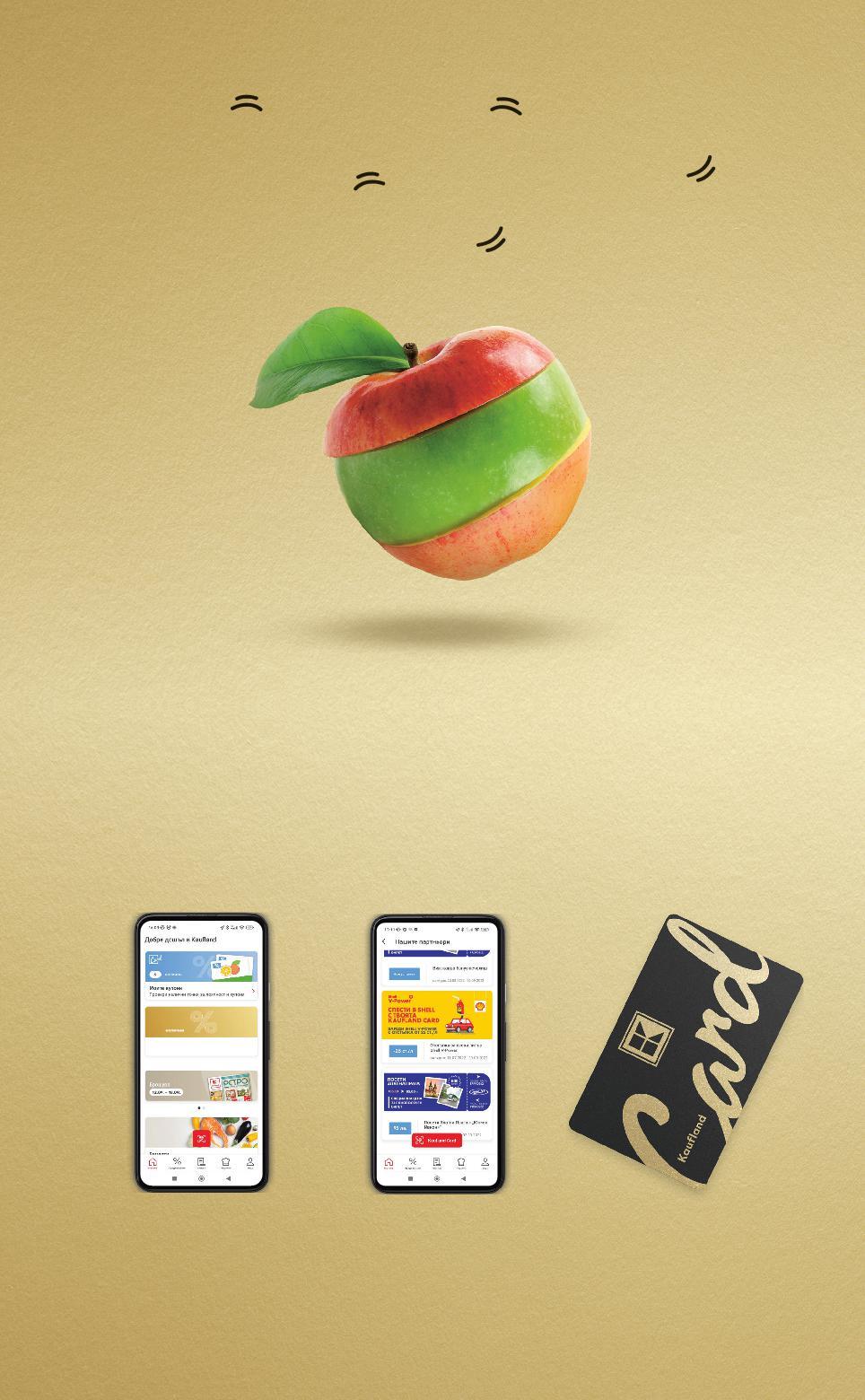 Цените са валидни за посочените на последна страница хипермаркети. Стоките се продават в количества, обичайни за едно домакинство. Всички цени са в лева с включен ДДС. Всички артикули се предлагат без декорация. Снимките са примерни. сочни, с леко кисела ноткасладко-кисел вкус и наситен аромат едри и много ароматни едри, златисто жълти със сладък вкус В част от нашите хипермаркети ябълките ще бъдат и от други доставчици. Виж повече на kaufland.bg/ dogovorno-izkupuvane С екипа на ЗП Георги Разсипийски си партнираме за ДОГОВОРНО ИЗКУПУВАНЕ НА ПРОДУКЦИЯТА Различни сортове сочни ябълки от с. Граница се предлагат в границите на хипермаркети Kaufland, благодарение на екипа на Георги Разсипийски, част от който е и агрономът Фани Илиева. ДОГО В ОРНОИЗКУПУВАНЕНАПРОД У К ЦИТЯА ✓ КЛИЕНТЪТ Е СПОКОЕН, че продуктите са чисти и от местни производители ✓ ПРОИЗВОДИТЕЛЯТ Е СИГУРЕН къде ще пласира продукцията си ✓ KAUFLAND ГАРАНТИРА качеството отглежданитена продукти златисто жълти сочни и ароматни, със сладко-кисел вкус едри и сладки -34% 1,49 2,29 -32% 1,69 2,49 1,25 само -34% 1,49 2,29 -34% 1,49 2,29 -34% 1,49 2,29 Ябълки превъзходнаЗлатна Клас: I кг РедЯбълкиКан Клас: І кг Ябълки превъзходнаЧервена Клас: I кг ПиноваЯбълки Клас: I кг Ябълки Кримсън крисп Клас: I кг ГалаЯбълки Клас: I кг ПЛОДОВЕ И ЗЕЛЕНЧУЦИ 8 S8-BG-KW38-LFT-OGP_L-1000-10 8