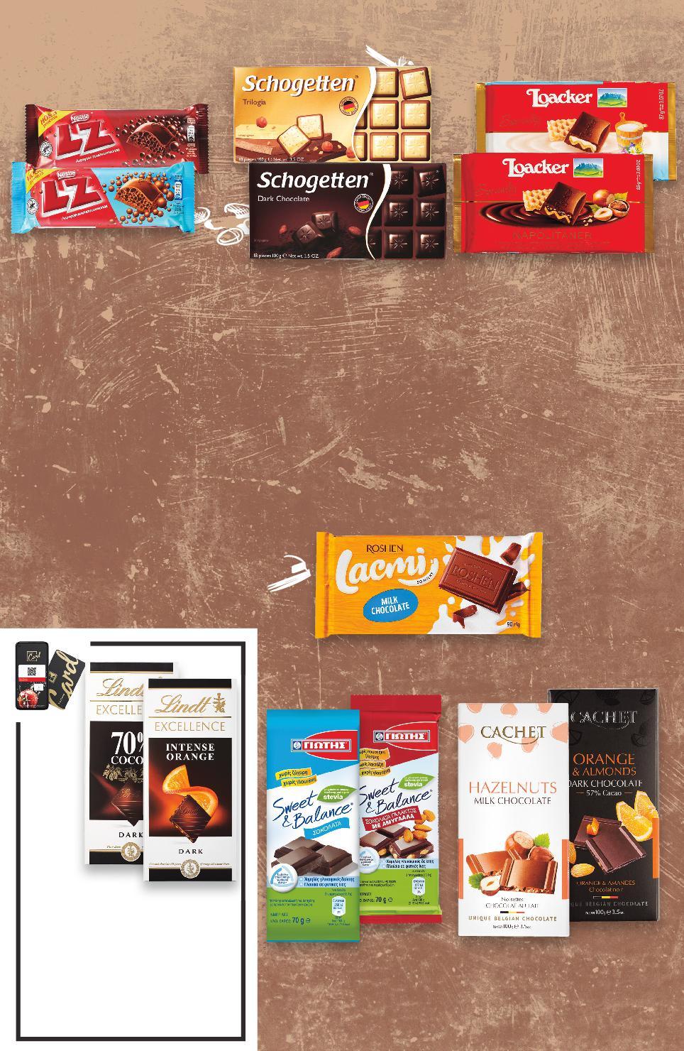 Отстъпката с Kaufland Card e изчислена спрямо стандартната текуща цена, на която продуктът се предлага в хипермаркета.Цените са валидни за посочените на последна страница хипермаркети. Стоките се продават в количества, обичайни за едно домакинство. Всички цени са в лева с включен ДДС. Всички артикули се предлагат без декорация. Снимките са примерни. -15% 1,69 1,99 2,19 само -25% 2,99 3,99 -33% 1,99 2,99 0,79 само -22% 3,39 с4,39 4,39 амо само -31% 1,49 2,19 ШоколадSCHOGETTEN различни видове 100 г (1 кг = 16,90) ШоколадLOACKER различни видове 85 - 87 г (1 кг = от 25,18) ШоколадCACHET различни видове 100 г (1 кг = 29,90) ШоколадJOTIS видоверазлични 70 г (1 кг = 28,43) АерошоколадLZ млечен, натурален или натурален с мента 36 г (1 кг = 50видоверазличниШоколадEXCELLENCELINDT21,95)-100г(1кг=от33,90) Цена CARDKAUFLANDс ШоколадLACMI различни видове 90 - 100 г (1 кг = до 16,56) СВЕТЪТ НА ШОКОЛАДА КАКАОВИ ИЗКУШЕНИЯ НА ИЗГОДНИ ЦЕНИ без захар без глутен без лактоза S24-BG-KW38-LFT-SCHOK1_L-1000-10 24