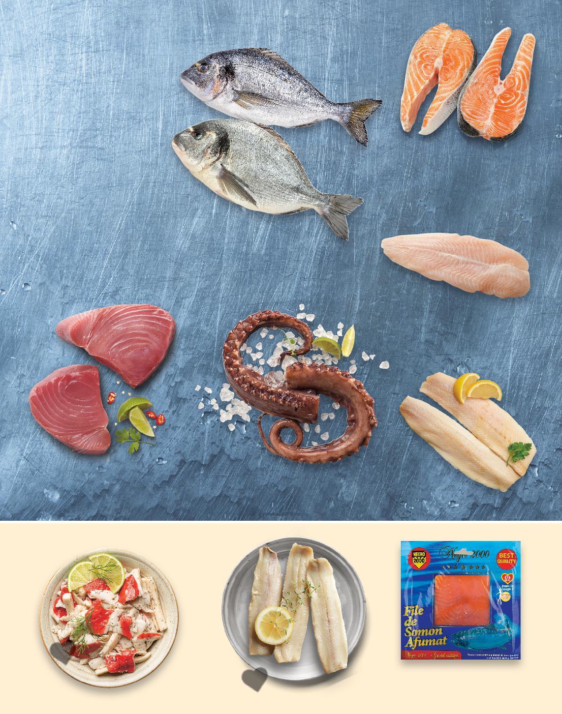 Цените са валидни за посочените на последна страница хипермаркети. Стоките се продават в количества, обичайни за едно домакинство. Всички цени са в лева с включен ДДС. Всички артикули се предлагат без декорация. Снимките са примерни. На последна страница може да видиш дали в твоя Kaufland предлагаме риба и морски деликатеси от витрина с обслужване или на самообслужване. -31% 10,99 15,99 -52% 2,39 4,99 -25% 29,99 39,99 -25% 29,99 39,99 -43% 12,99 22,99 -31% 14,99 21,99 -22% 13,99 17,99 -25% 7,49 9,99 -30% 13,99 19,99 Пангасиус филе Улов: aквакултури във Виетнам размразено кг (1 кг = 10,99) NEGRO Норвежка сьомга филе студено-пушено 50 г (1 кг = 47,80) Риба тон филе Улов: див улов в Испания размразено кг (1 кг = 29,99) Сьомга котлет Улов: аквакултури в Норвегия пресен кг (1 кг = 29,99) Салата Морски дар кг (1 кг = 12,99) Сельодка филе натуралнo кг (1 кг = 14,99) Калмари пипала Улов: див улов в Перу размразени кг (1 кг = 13,99) Херинга филе Улов: див улов в Исландия размразено кг (1 кг = 7,49) Ципура изчистена, без люспи Улов: аквакултури в Гърция прясна кг (1 кг = 13,99) РИБНИ ДЕЛИКАТЕСИ СПЕЦИАЛНА ОПАКОВКА, ЗАПАЗВАЩА СВЕЖЕСТТА ДОСТАВКИ ОТ УТВЪРДЕНИ ПАРТНЬОРИ СВЕЖ УЛОВ ОТ БЛИЗО И ДАЛЕЧ РИБА И МОРСКИ ДЕЛИКАТЕСИ съдържа Омега-3 мастни киселини S16-BG-KW02-LFT-FIP_L-1000-10 16