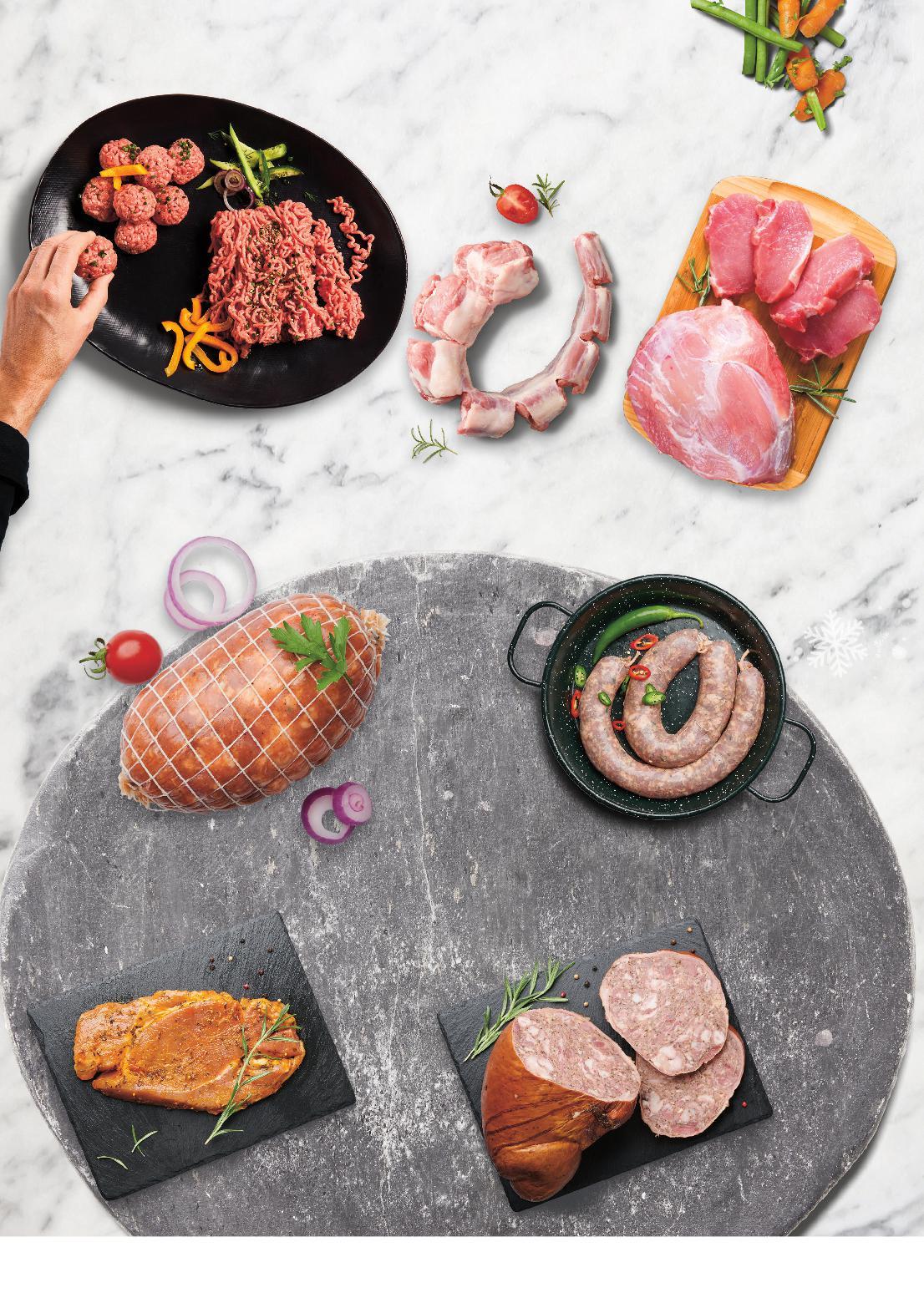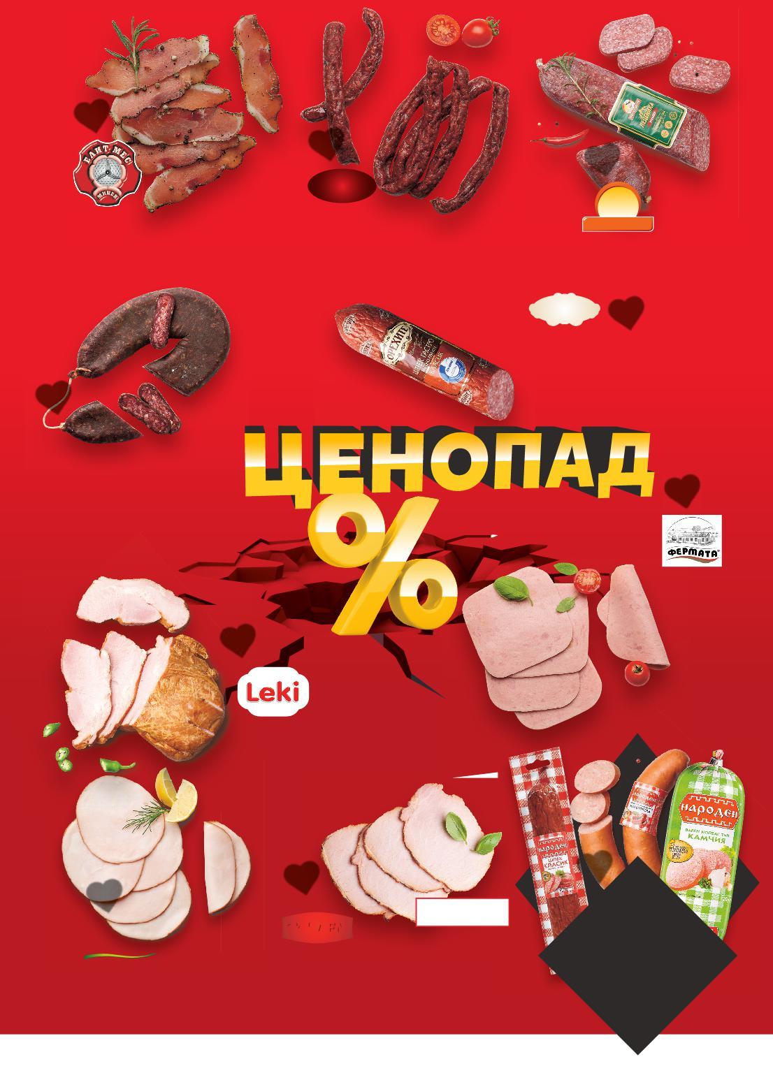 Цените са валидни за посочените на последна страница хипермаркети. Стоките се продават в количества, обичайни за едно домакинство. Всички цени са в лева с включен ДДС. Всички артикули се предлагат без декорация. Снимките са примерни. С Р ПРЯСНО. СУ ЗГОДНО ПРЕДЛОЖЕНИЯ СПЕЦИАЛНОЗА ЗИМАТА СЕЗОННИ 20 НАД 9,99 само -0% 9,99 само 11,99* само 10,99* само -16% 4,99 5,99 22,99 -30% 7,49 10,79 само Телешкo мляно месо кг (1 кг = 9,99) Петрички суджук кг (1 кг = 9,99) Медено свинско с мед и мащерка кг (1 кг = 10,99) Свинско роле готово за печене във фурна 500 г (1 кг = 9,98) Зимна кълцаница кг (1 кг = 11,99) Свинска плешка без кост кг (1 кг = 7,49) Опашки от младо телешко кг (1 кг = 22,99) МЕСО ОТ ВИТРИНА С ОБСЛУЖВАНЕ S10-BG-KW02-LFT-BED1_L-1000-10 10