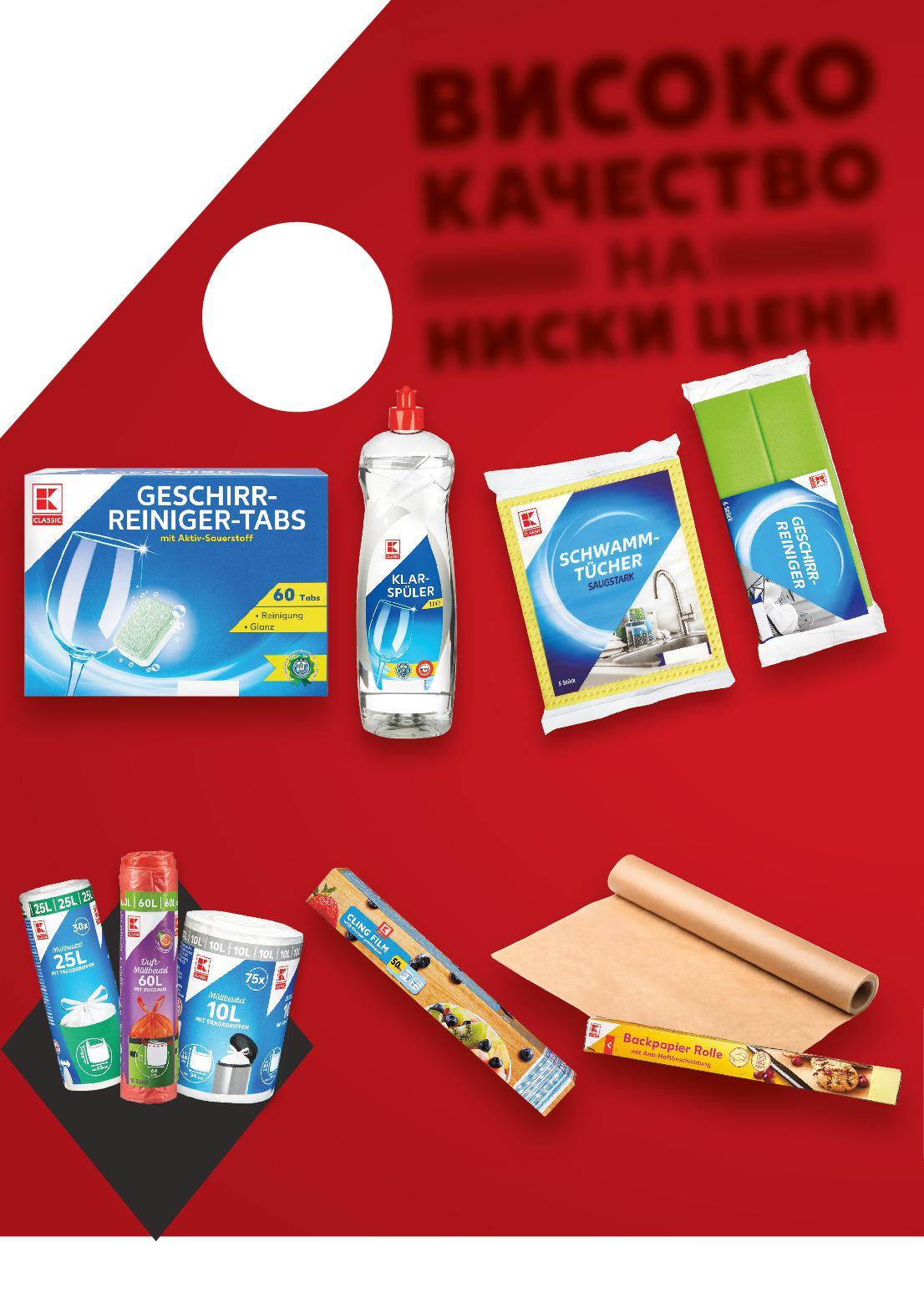 К О Е В ВИСОКО НИСКИ ЦЕНИ НИСКИ ЦЕНИ НА НАД 800 K-CLASSIC ПРОДУКТА ЩЕ НАМЕРИШ ПРИ НАС Цените са валидни за посочените на последна страница хипермаркети. Стоките се продават в количества, обичайни за едно домакинство. Всички цени са в лева с включен ДДС. Всички артикули се предлагат без декорация. Снимките са примерни. -25% ОТСТЪПКА ЗА ТОРБИ ЗА СМЕТ С МАРКА K-CLASSIC ПРИ -25% 7,49 9,99 -18% 2,99 3,69 -21% 2,59 3,29 -30% 1,99 2,85 1,29 -22% 1,69 2,19 само Таблетки за съдомиялнa машинa осигуряват блясък и чистота 60 бр. в опаковка (1 бр. = 0,13) Гланц за съдомиялна машина за перфектен блясък 1 л (1 л = 2,99) Хартия за печене 20 м 1 бр. (1 м = 0,13) Фолио за свежо съхранение 30 м 1 бр. (1 м = 0,07) Попивателна кърпа 18 х 20 см 5 бр. в опаковка (1 бр. = 0,34) Домакинска гъба за съдове 6 бр. в опаковка (1 бр. = 0,22) с активен кислород S28-BG-KW02-LFT-KLC_L-1000-10 28