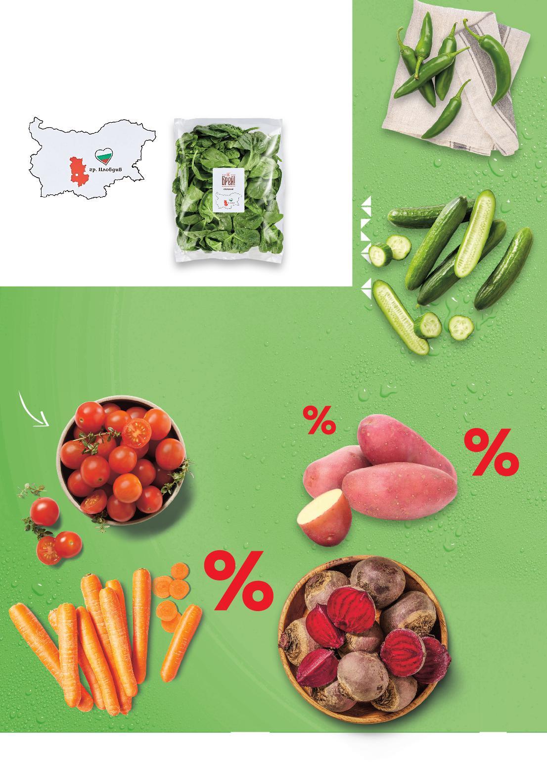 В част от нашите хипермаркети спанакът ще бъде и от други доставчици Цените са валидни за посочените на последна страница хипермаркети Стоките се продават в количества, обичайни за едно домакинство Всички цени са в лева с включен ДДС Всички артикули се предлагат без декорация Снимките са примерни д х п и е дават о и с в о и ед о т т х ер и с а ъд д и с в сочни, ароматни и сладки -33% 1,99 2,99 -22% 3,49 4,49 -35% 0,89 1,39 -33% 0,99 1,49 -36% 1,59 2,49 -20% 3,99 4,99 -16% 2,49 2,99 Домати коктейлни Клас: I 500г в опаковка (1 кг = 3,98) Късоплодни краставици Клас: I кг Моркови Клас: I кг Червено цвекло Клас: I кг Червени картофи Клас: I кг Люти чушки Клас: I кг Спанак Клас: I подходящ за салата 300 г в опаковка (1 кг = 8,30) ПЛОДОВЕ И ЗЕЛЕНЧУЦИ Как се отглеждат зеленчуци с марка Брей! виж на kaufland.bg СУПЕР СВЕЖО. СУПЕР ИЗГОДНО S8-BG-KW02-LFT-OGP_L-1000-10 8