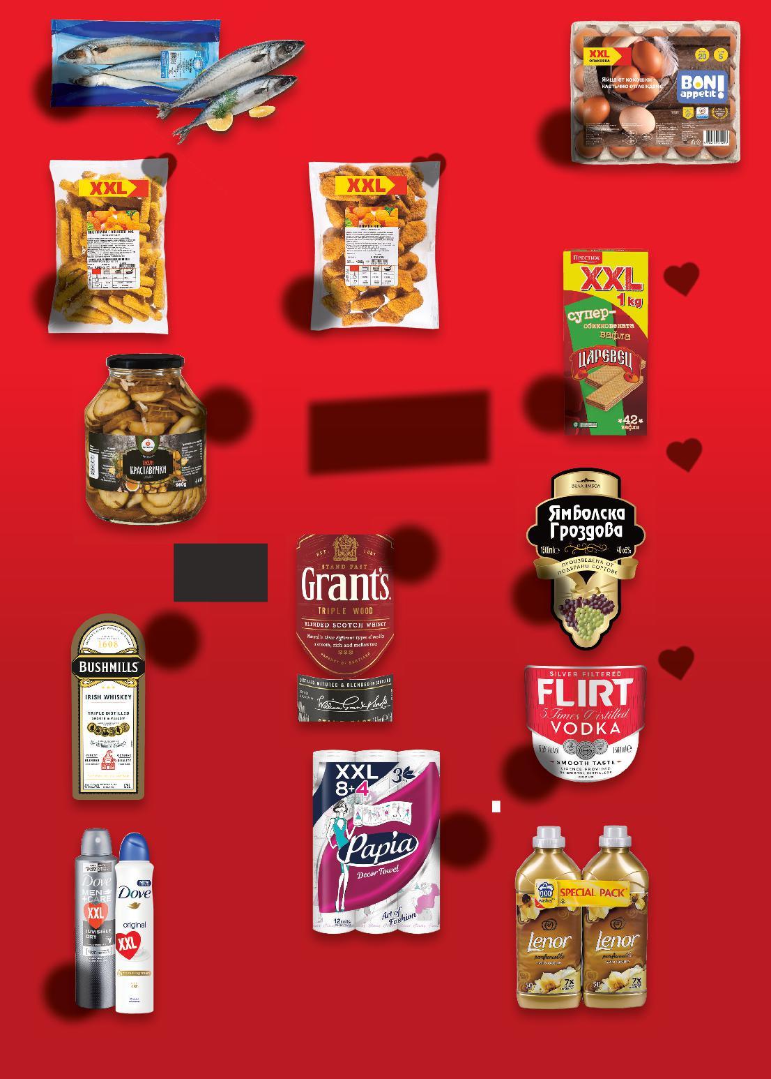 *Със звездичка са обозначени артикулите, които са специално предложение до изчерпване на наличностите. Kaufland не носи отговорност за печатни грешки. Р З Р XXL СПЕСТЯВАЙ В 5,99* само 7,59* само -30% 9,79 13,99 11,49 само 13,99 само -39% 6,99 11,49 14,99* само 31,99* само -31% 4,79 6,99 -33% 5,99 8,99 -20% 17,99 22,49 -16% 4,99 5,99 1,5 литра 1,5 литра 1,5 литра ≈1 кг 1 кг 1 кг 1 кг 1,7 кг 12 броя 20 броя 250 мл 50,99* само 1,75 литра ЦАРЕВЕЦ Обикновени вафли 1 кг (1 кг = 5,99) Кокоши яйца размер S 20 бр. в опаковка (1 бр. = 0,38) САМИ-М Панирани пръчици с кашкавал замразени 1 кг (1 кг = 9,79) LENOR Омекотител или Парфюмни перли омекотител: различни видове 2 x 1,5 - 1,7 л = 2 х 50 - 57 пранета парфюмни перли: Spring Awakening 2 х 140 г (1 л = от 3,38) PAPIA Кухненска ролка Decor или Pure& Soft трипластова 12 бр. (1 бр. = 1,17) DOVE Дезодорант спрей дамски или мъжки различни видове 250 мл (1 л = 27,96) FLIRT Водка 37,5% vol 1,5 л (1 л = 10,00) GRANT‘S Шотландско уиски 40% vol 1,5 л (1 л = 21,33) Скумрия Scomber Japonicus цяла, замразена XXL опаковка над 1 кг кг (1 кг = 4,79) САМИ-М Панирани пилешки хапки замразени 1 кг (1 кг = 5,99) ЯМБОЛСКА Гроздова 40% vol 1,5 л (1 л = 12,00) БУЛГАРПЛОД Кисели краставички на шайби 900 г (1 кг = 5,55) BUSHMILLS Ирландско уиски 40% vol 1,75 л (1 л = 29,14) ПРОМОПАКЕТ ПРОМОПАКЕТ S3-BG-KW02-LFT-XXL1_R-1000-10 3