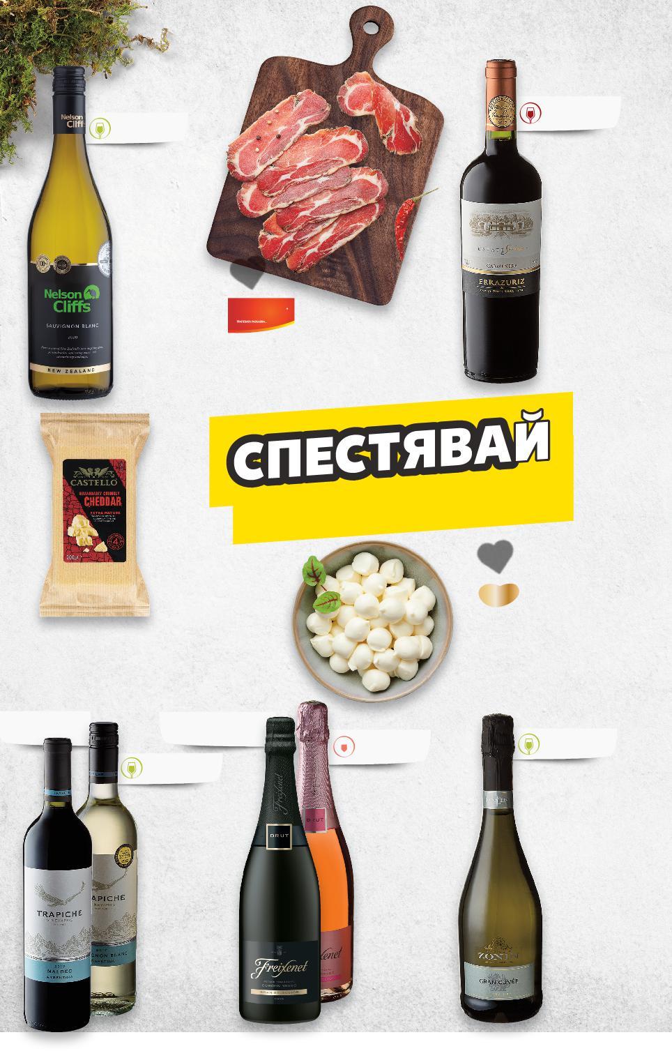 Цените са валидни за посочените на последна страница хипермаркети. Стоките се продават в количества, обичайни за едно домакинство. Всички цени са в лева с включен ДДС. Всички артикули се предлагат без декорация. Снимките са примерни. Фин с плодови нотки на Фини нотки на ябълка и на сини сливи и на и аспержи 19,99* само -20% 11,99 14,99 -43% 29,99 52,99 -21% 12,99 16,49 -28% 13,99 19,49 -26% 12,99 17,59 -20% 5,59 6,99 -30% 17,99 25,99 Свежо сирене Топика кг (1 кг = 19,99) NELSON CLIFFS Бяло вино или Розе Произход: Нова Зеландия 0,75 л (1 л = 15,99) Роле Трапезица сушено 40 дни кг (1 кг = 29,99) TRAPICHE VINEYARDS Червено или бяло