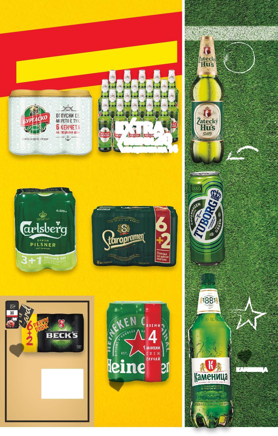 XXL РАЗМЕР ИЗГОДНО Цените са валидни за посочените на последна страница хипермаркети Стоките се продават в количества, обичайни за едно домакинство Всички цени са в лева с включен ДДС. Всички артикули се предлагат без декорация. Снимките са примерни. Отстъпката с Kaufland Card e изчислена спрямо стандартната текуща цена, на която продуктът се предлага в хипермаркета. ните -30% 33,46 47,80 1,89 само -23% 5,49 7,16 -26% 1,59 2,15 -26% 5,49 7,49 -30% 7,89 11,34 -29% 3,99 5,67 1,19 само 1 литър 2 литрa -27% 7,79 10,74 само STELLA ARTOIS Бира 20 х 0,5 л бутилка (1 л = 3,35) КАМЕНИЦА Бира 4,4% vol vol 2 л PET л (1 л = 0,95) HEINEKEN Бира 5% vol 4 х 0,5 л кен (1 л = 2,75) ZATECKY HUS Бира 5% vol 1 л PET л (1 л = 1,59) БУРГАСКО Бира 4,4% vol 6 х 0,5 л кен (1 л = 1,83) STAROPRAMEN Бира 6 + 2 х 0,5 л кен (1 л = 1,98) CARLSBERG Бира 5% vol 3 + 1 бр. х 0,5 л кен (1 л = 2,00) TUBORG Бира 4,6% vol 0,5 л кен (1 л = 2,38) BECK‘S Бира 5% vol 6+2 бр.х0,5 л кен (1 л = 1,95) Цена с KAUFLAND CARD *Цената не включва цена на амбалaж и каса *Цената на амбалаж 0,10 лв. и каса 3,51 лв. XXL ПРЕДЛОЖЕНИЯ ПРОМОПАКЕТ ПРОМОПАКЕТ ПРОМОПАКЕТ ПРОМОПАКЕТ 20 14 S10-BG-KW46-LFT-BIER_CH_L-1000-10 10