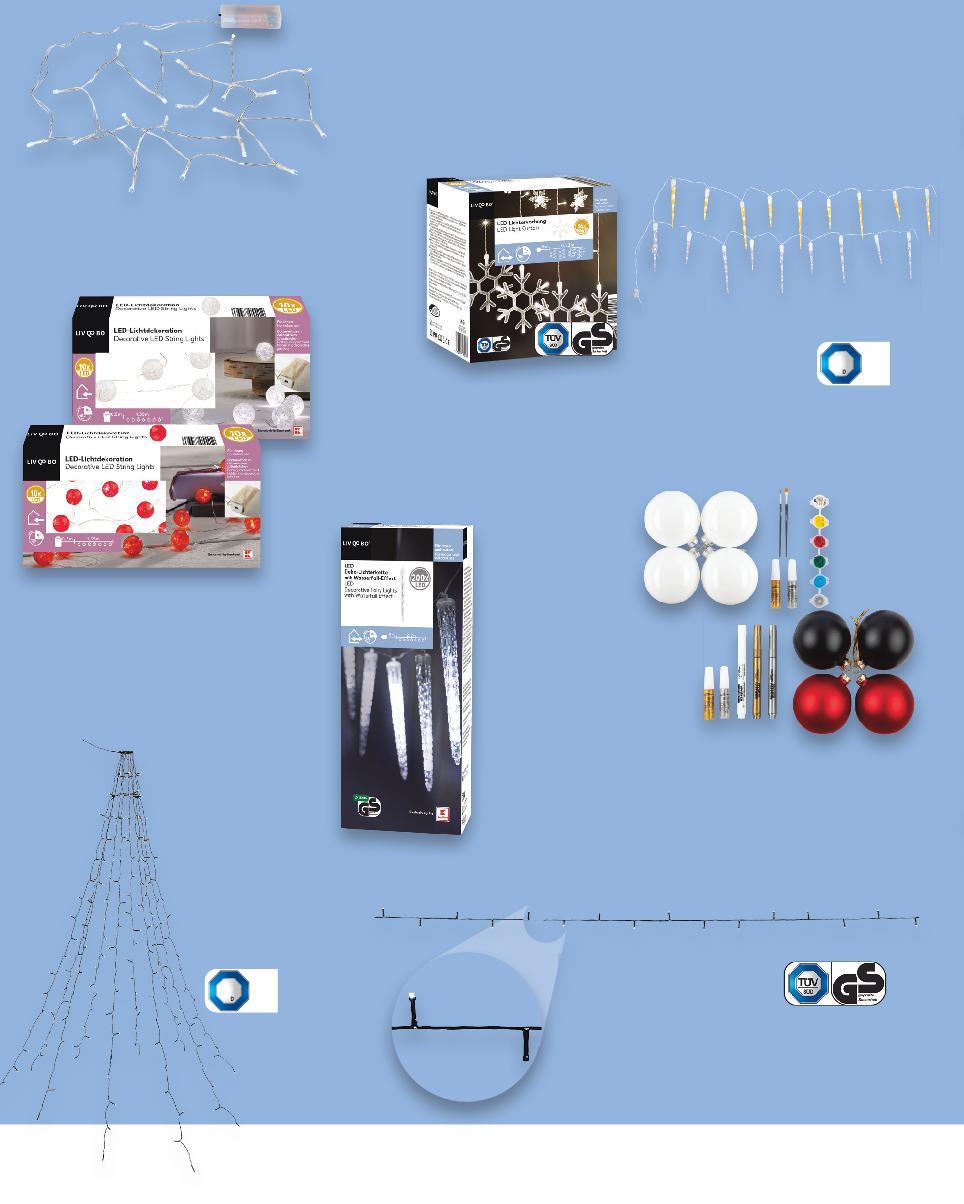 Цените са валидни за посочените на последна страница хипермаркети Стоките се продават в количества, обичайни за едно домакинство Всички цени са в лева с включен ДДС. Всички артикули се предлагат без декорация. Снимките са примерни. ните ЗА СВЕТЛА КОЛЕДА У ДОМА С Коледен LED гирлянд 20 LED елемента, за закрито, топла или студена светлина, 2,4 х 0,5 м Коледни топки топки за оцветяване за 2 черни, 2 червени 2 черни, 2 червени стъклени топки или 4 бели или стъклени топки и различни и аксесоари, 9 или 14 части 9 или 14 части Коледна LED украса топла или студена светлина, 6-часов таймер, за закрито, различни видове Коледна LED украса 400 LED елемента, топла или студена светлина, 6/18-часов таймер 8 светлинни ефекта Коледни LED висулки 128 LED елемента, топла или студена светлина, таймер, за открито или закрито, 17,75 м, кабел 10 м Коледна LED завеса 86 LED елемента, таймер, за открито или закрито, кабел 5 м 19,99* само 29,99 само само 11,99 11,99* само 8,99* само 39,99* само 54,99* само 29,99 само 5,99 само 3,99* 12,99* само само 4 броя Чаени свещи различни аромати и цвтове, 6 или 18 бр. Коледна LED украса за елха 20 LED елемента, 6-часов таймер, различни видове Коледна LED украса 180 или 200 LED елемента, 8 светлинни ефекта, за открито или закрито, обща дължина 30 м Коледни LED висулки с ефект „водопад“, 200 LED елемента, топла или студена светлина, 6/18-часов таймер, за открито или закрито, 5 м Коледна LED украса с 50 LED елемента, за открито, различни видове ОТ ПОНЕДЕЛНИК, 14.11.2022 ДО НЕДЕЛЯ, 20.11.2022 S50-BG-KW46-LFT-WEEK_L-1000-10 50