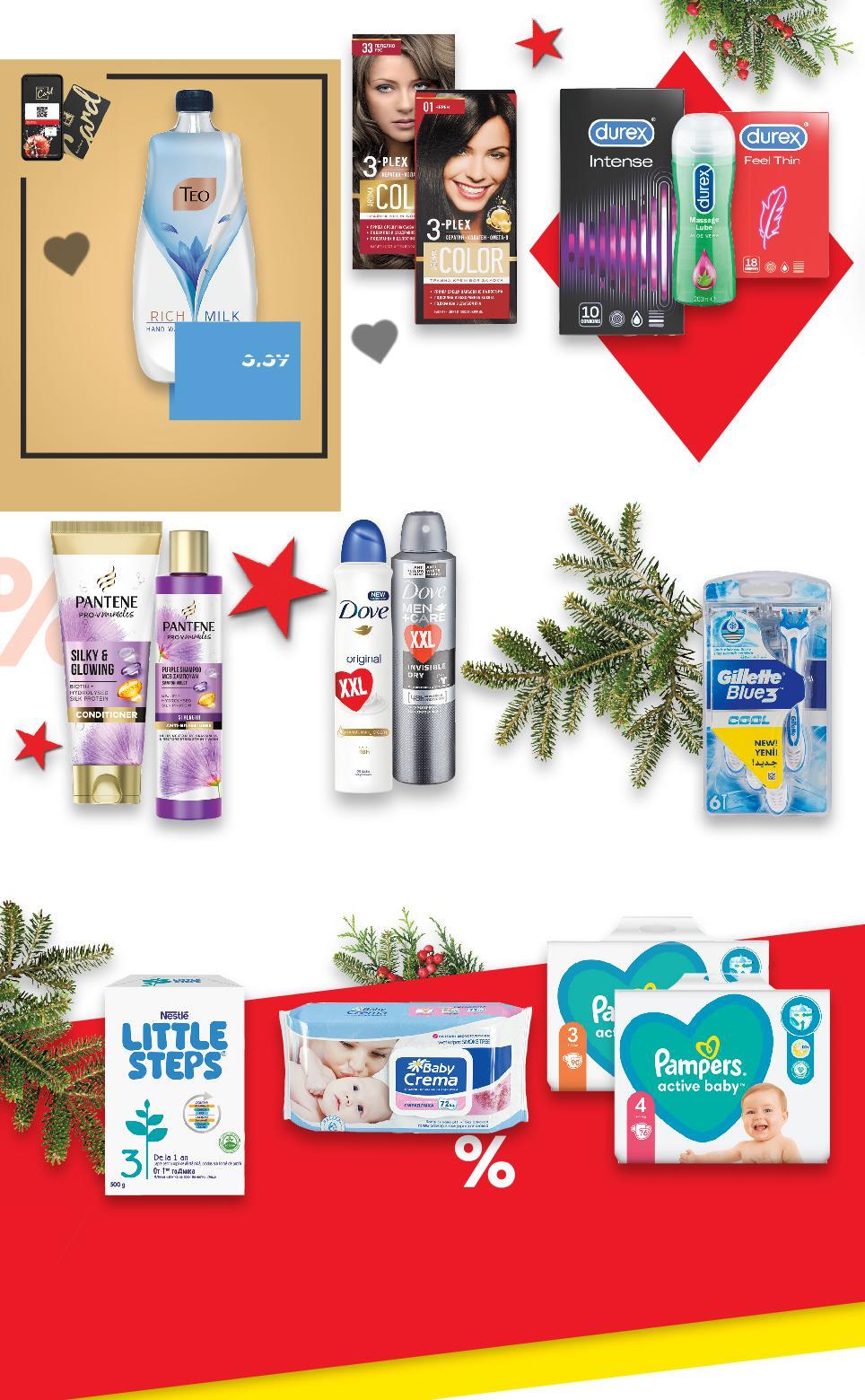 Отстъпката с Kaufland Card e изчислена спрямо стандартната текуща цена, на която продуктът се предлага в хипермаркета. Цените са валидни за посочените на последна страница хипермаркети. Стоките се продават в количества, обичайни за едно домакинство. Всички цени са в лева с включен ДДС. Всички артикули се предлагат без декорация. Снимките са примерни. -30% ОТСТЪПКА ЗА ВСИЧКИ ПРОДУКТИ С МАРКА DUREX BABY CREMA Бебешки влажни кърпи с капак смрадлика или невен 72 бр. в опаковка 11,99 само -39% 6,99 11,49 32,99 само -18% 2,19 2,69 11,99 само -29% 2,69 3,79 -35% 6,49 9,99 -32% 2,29 с3,39 3,39 амо само AROMA COLOR Боя за коса различни цветове 1 бр. NESTLE Aдаптирано мляко Little Steps 3 за деца над 1 година 500 г (1 кг = 23,98) DOVE Дезодорант спрей дамски или мъжки различни видове 250 мл (1 л = 27,96) GILLETTE Самобръсначка мъжка или дамска Hybrid с 8 или 9 ножчета или Blue3 или Venus3 различни видове 3 - 6 бр. в опаковка (1 бр. = от 2,00) PAMPERS Бебешки пелени или гащички пелени: размери 3, 4, 5 или 6 56 - 90 бр. в опаковка гащички: размери 3, 4, 5 или 6 48 - 76 бр. в опаковка (1 бр. = от 0,37) PANTENE Шампоан или Балсам различни видове 200 - 400 мл (1 л = до 32,45) TEO RICH MILK Течен сапун различни видове 800 мл (1 л = 2,87) Цена с KAUFLAND CARD КОЗМЕТИЧНИ ПРОДУКТА ЩЕ НАМЕРИШ ПРИ НАС НАД 2400 КОЗМЕТИКА ЗА НАЙ-МАЛКИТЕ S32-BG-KW46-LFT-KOSM_L-1000-10 32