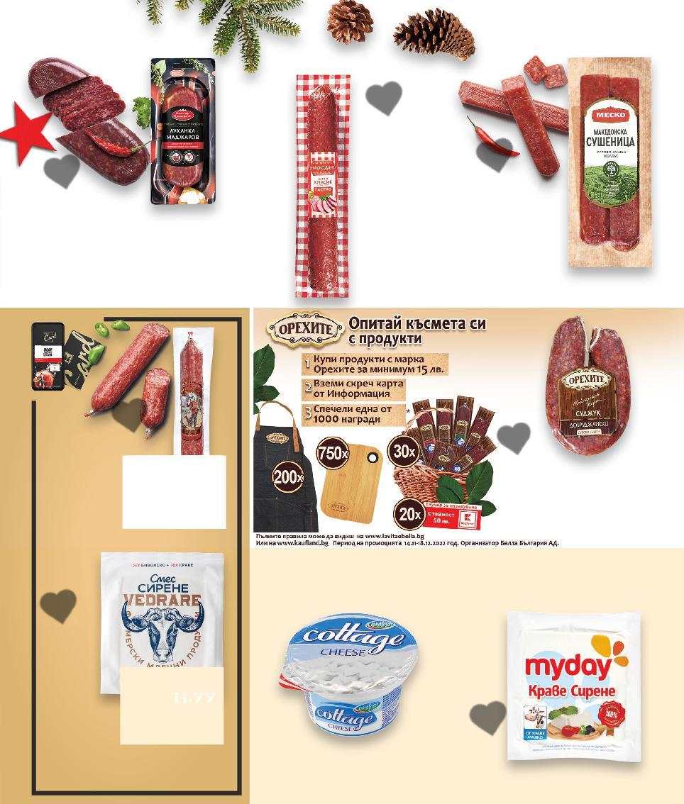 -25% ОТСТЪПКА ЗА КРЕНВИРШИ И НАДЕНИЦИ ОТ ВИТРИНА С ОБСЛУЖВАНЕ С МАРКА ЛЕКИ *Със звездичка са обозначени артикулите, които са специално предложение до изчерпване на наличностите. Kaufland не носи отговорност за печатни грешки. РЕЖЕМ ЦЕНИТЕ НА ТЪНКО СПЕСТИ ДО -42% ОТ ЦЕНАТА -30% 24,99 35,99 -30% 5,39 7,79 9,89 само -37% 18,59 29,89 -27% 16,49 22,59 -30% 34,99 49,99 -40% 20,99 34,99 -42% 25,99 44,99 КОЛБАСИ ОТ ВИТРИНА С ОБСЛУЖВАНЕ Пастърма от свинско контра филе с поръска от ароматни подправки кг (1 кг = 24,99) Кренвирши от птиче месо кг (1 кг = 5,39) Свински бут варено-пушен кг (1 кг = 9,89) Свински бут печен с крехка коричка кг (1 кг = 18,59) Шпек Сандвич варено-пушен опушен с естествен пушек кг (1 кг = 16,49) Луканка Габровска с черен пипер и кимион кг (1 кг = 34,99) Суджук Макси от говеждо и свинско месо кг (1 кг = 20,99) Свински бут Древяна сурово-сушен кг (1 кг = 25,99) с кимион и черен пипер сурово-сушена минимум 30 дни от ръчно обезкостено свинско месо S15-BG-KW46-LFT-BED1_R-1000-10 15