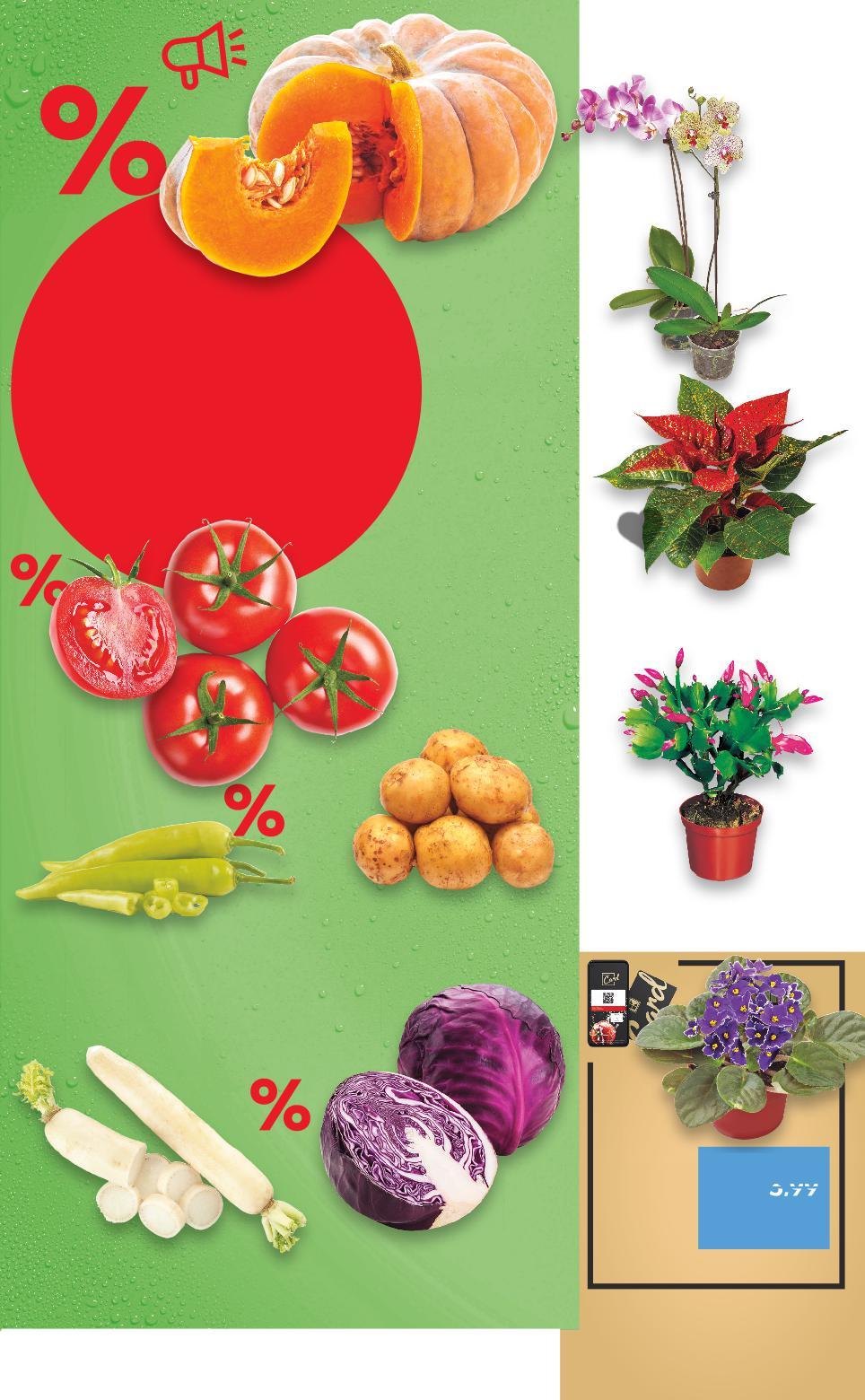 Отстъпката с Kaufland Card e изчислена спрямо стандартната текуща цена, на която продуктът се предлага в хипермаркета. *Със звездичка са обозначени артикулите, които са специално предложение до изчерпване на наличностите. Kaufland не носи отговорност за печатни грешки. СПЕСТИ ДО -50% ОТ ЦЕНАТА ТИ Д 13,99* само 1,49 само 0,99 само 2,29 само -25% 1,49 1,99 3,99* само 5,49* само -25% 2,99 3,99 -50% 0,74 1,49 -25% 2,99 с3,99 3,99 амо само Орхидея Фаленопсис Стайно растение Ø12 см бр. Ряпа Дайкон Клас: I кг Домати Клас: I кг (1 кг = 2,29) Червено зеле Клас: I кг Картофи Клас: I кг Коледниче (Шлумбергера) Стайно растение Ø9 см бр. Коледна звезда Стайно растение Ø10,5 см бр. Чушки Сиврия Клас: I кг Тиква Френска мускатна Клас: I кг Сентполия Стайно растение Ø 10 см бр. Цена с KAUFLAND CARD ЦВЕТЯ ОТ ВТОРНИК 15.11. S13-BG-KW46-LFT-OGP_R-1000-10 13