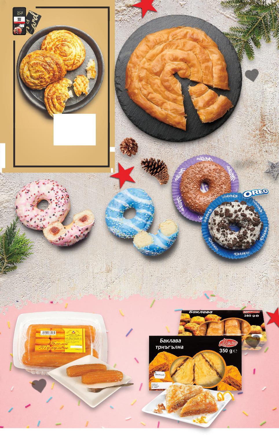 *Със звездичка са обозначени артикулите, които са специално предложение до изчерпване на наличностите. Kaufland не носи отговорност за печатни грешки. РАЗНООБРАЗИЕ ОТ НАД 20 ТОРТИ И ДЕСЕРТA 3,99 само -38% 2,99 4,89 -26% 1,09 1,49 0,89 само -36% 0,99 1,55 -40% 0,79 1,32 само с1,32 амо 1,69 само Вита баница със сирене и извара или с тиква 460 г (1 кг = 8,68) МЕМО Баклава триъгълна или каре 350 г (1 кг = 8,55) Донът Milka или Oreo 55 - 73 г (1 кг = до 19,82) Донът със синя глазура 55 г (1 кг = 1,62) Донът чийзкейк с малина 69 г (1 кг = 14,35) Кашкавалка 120 г (1 кг = 6,59) Цена с KAUFLAND CARD ХУБАВИ НЕЩА Тулумби големи 200 г (1 кг = 8,45) Отстъпката с Kaufland Card e изчислена спрямо стандартната текуща цена, на която продуктът се предлага в хипермаркета. S19-BG-KW46-LFT-BED3_R-1000-10 19