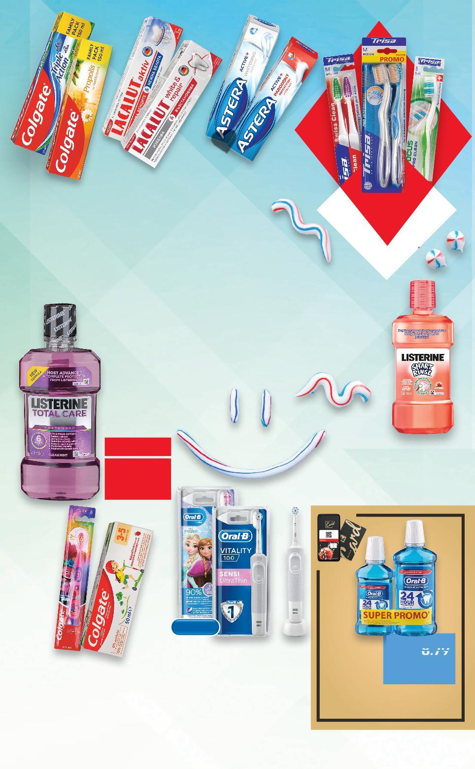 Отстъпката с Kaufland Card e изчислена спрямо стандартната текуща цена, на която продуктът се предлага в хипермаркета. *Със звездичка са обозначени артикулите, които са специално предложение до изчерпване на наличностите. Kaufland не носи отговорност за печатни грешки. -40% ОТСТЪПКА ЗА ВСИЧКИ МЕХАНИЧНИ ЧЕТКИ ЗА ЗЪБИ С МАРКА TRISA -25% 1,49 1,99 -37% 5,99 9,59 2,29 само -32% 2,69 3,99 -24% 7,89 10,49 -40% 37,99 63,99 -38% 3,39 5,49 -34% 5,79 8,79само само ASTERA Паста за зъби Active+ различни видове 110 г (1 кг = 13,55) LACALUT Паста за зъби различни видове 75 мл (1 л = 79,87) COLGATE Паста за зъби Triple Action или Propolis 150 мл (1 л = 15,27) COLGATE KIDS Четка или Паста за зъби за деца различни видове 1 бр. или 50 мл (1 бр. = 2,69) LISTERINЕ Bода за уста Total Care или Naturals Enamel различни видове 500 мл (1 л = 15,78) Електрическа четка за зъби Vitality D100 Sensi UltraThin или детска Frozen или Cars 2D въртеливо движение, вграден таймер LISTERINE Детска вода за уста Smart Rinse 250 мл (1 л = 13,56) ORAL-B Вода за уста Expert Protection 500 + 250 мл (1 л = 7,72) Цена с KAUFLAND CARD ЗА БЛЯСКАВА УСМИВКА ПРОМОПАКЕТ КОЗМЕТИКА S33-BG-KW46-LFT-KOSM_R-1000-10 33