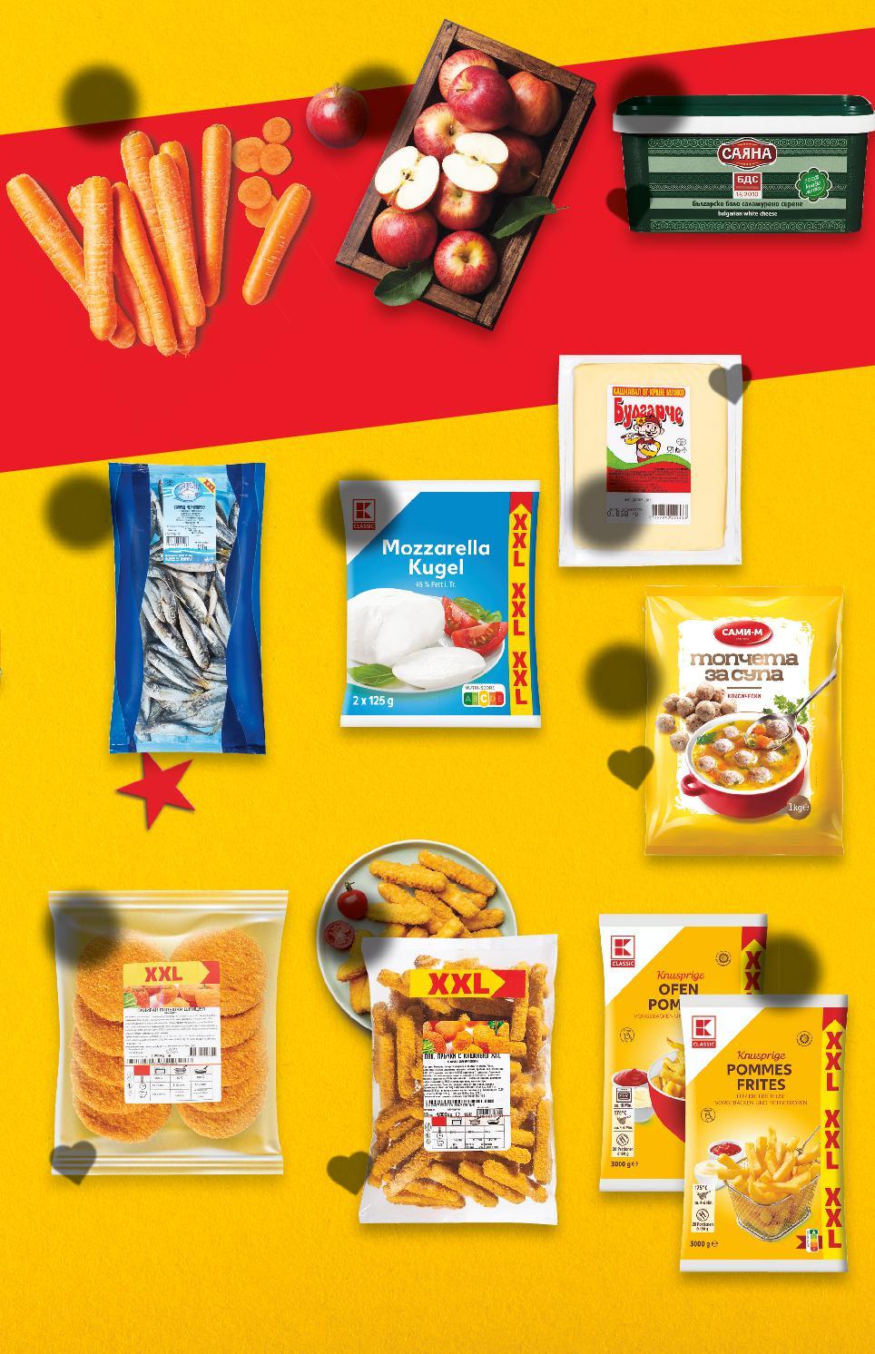 *Със звездичка са обозначени артикулите, които са специално предложение до изчерпване на наличностите. Kaufland не носи отговорност за печатни грешки. -37% 4,99 7,99 17,99* само 29,99* само 6,99* само -38% 7,99 12,89 8,99 само 2,99* само 2,89 само -30% 3,49 4,99 -50% 5,19 10,49 ДАНЕЛ Сафрид черноморски замразен XXL опаковка кг (1 кг = 4,99) БУЛГАРЧЕ Кашкавал от краве мляко вакуум опаковка кг (1 кг = 17,99) САЯНА Сирене от краве мляко по БДС 2 кг (1 кг = 15,00) Картофи за фритюрник или за печене замразени 3 кг (1 кг = 2,33) САМИ-М Панирани пръчици с кашкавал замразени 1 кг (1 кг = 7,99) САМИ-М Топчета за супа замразени 1 кг (1 кг = 8,99) Моцарела 45% масленост 2 х 125 г (1 кг = 11,96) Моркови Клас: I едър размер 5 кг в опаковка (1 кг = 0,58) Ябълки Клас: I 3 кг в мрежа (1 кг = 1,17) САМИ-М Панирани пилешки шницели замразени 1 кг (1 кг = 5,19) 5 кг 2 кг 3 кг 1 кг 1 кг 1 кг 1 кг 3 кг около 850 грама 2x125 грама S5-BG-KW46-LFT-XXL1_R-1000-10 5