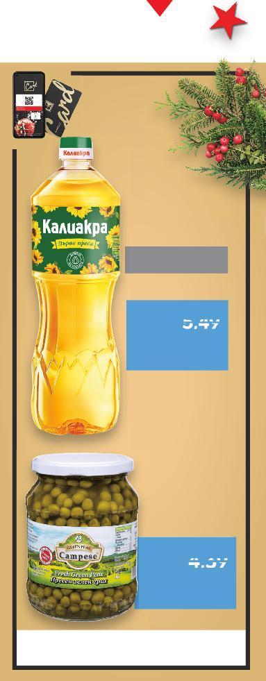 Отстъпката с Kaufland Card e изчислена спрямо стандартната текуща цена, на която продуктът се предлага в хипермаркета. 3 2 Цените са валидни за посочените на последна страница хипермаркети. Стоките се продават в количества, обичайни за едно домакинство. Всички цени са в лева с включен ДДС. Всички артикули се предлагат без декорация. Снимките са примерни. -20% ОТСТЪПКА ЗА ОХЛАДЕНИ ДЕСЕРТИ С МАРКА KINDER -30% 2,29 3,29 -10% 3,99 4,45 2,99 само -32% 4,99 7,39 -22% 2,95 3,79 1,29 само -26% 1,29 1,75 само амо МЛЕЧНИ ПРОДУКТИ, РАСТИТЕЛНИ ПРОДУКТИ И ЯЙЦА MY DAY Продукт за готвене Cremio UHT 200 мл (1 л = 11,45) ЗОРА Кокоши яйца от подово отглеждани кокошки размер М 10 бр. в опаковка (1 бр. = 0,40) КАЛИАКРА Продукт за мазане Класика или с вкус на масло 450 г (1 кг = 6,65) DEUTSCHE MARKENBUTTER Краве масло 82% масленост 250 г (1 кг = 19,96) OLYMPUS Прясно мляко 1,7% масленост бутилка от 100% рециклируем материал 1 л (1 л = 2,95) DANONE Напитка ДЗП ягода, диня или малина 310 г (1 кг = 4,17) ЗДРАВЕЦ Кисело мляко 2% масленост 500 г (1 кг = 2,58) Цена с KAUFLAND CARD обогатени със селен -33% 4,78 7,17 DANONE Сметана заквасена 3 х 200 г (1 кг = 7,97) НА ЦЕНАТА НА 2 ВЗЕМИ 3 S26-BG-KW46-LFT-MOPRO_L-1000-10 26