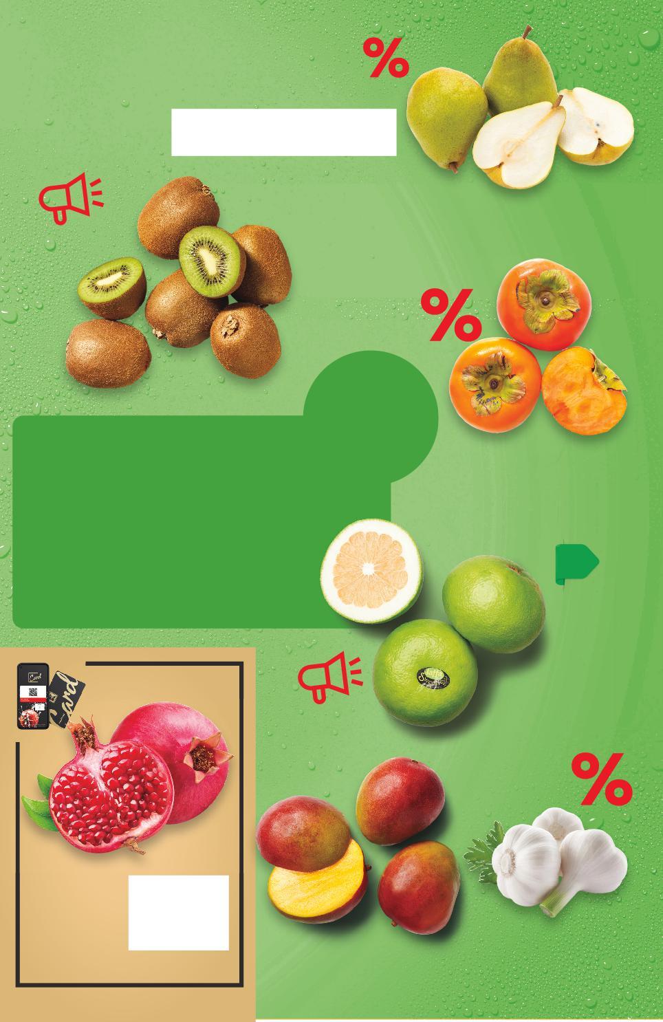 Отстъпката с Kaufland Card e изчислена спрямо стандартната текуща цена, на която продуктът се предлага в хипермаркета. Цените са валидни за посочените на последна страница хипермаркети. Стоките се продават в количества, обичайни за едно домакинство. Всички цени са в лева с включен ДДС. Всички артикули се предлагат без декорация. Снимките са примерни. КОНТРОЛ НА СВЕЖЕСТТА ПРЕЗ ЧАС СТРИКТЕН КОНТРОЛ ОТ ЗАСАЖДАНЕТО ДО РАФТА СВЕЖИ ПЛОДОВЕ И ЗЕЛЕНЧУЦИ СУПЕР СВЕЖО. СУПЕР ИЗГОДНО едър размер РАФТА И 4,99 само 1,29 само -25% 1,49 1,99 1,99 2,49 само само 1,99 само -34% 0,65 0,99 само с0,99 амо Сух чесън Клас: I кг (1 кг = 4,99) Райска ябълка Клас: I бр. Суити Произход: Израел цитрусов плод бр. Манго Клас: I едър размер бр. Круши Лукас Клас: I кг Киви Клас: I кг Нар Клас: I бр. Цена с KAUFLAND CARD ПЛОДОВЕ И ЗЕЛЕНЧУЦИ Ново сладко-кисел вкус и специфичен аромат S12-BG-KW46-LFT-OGP_L-1000-10 12