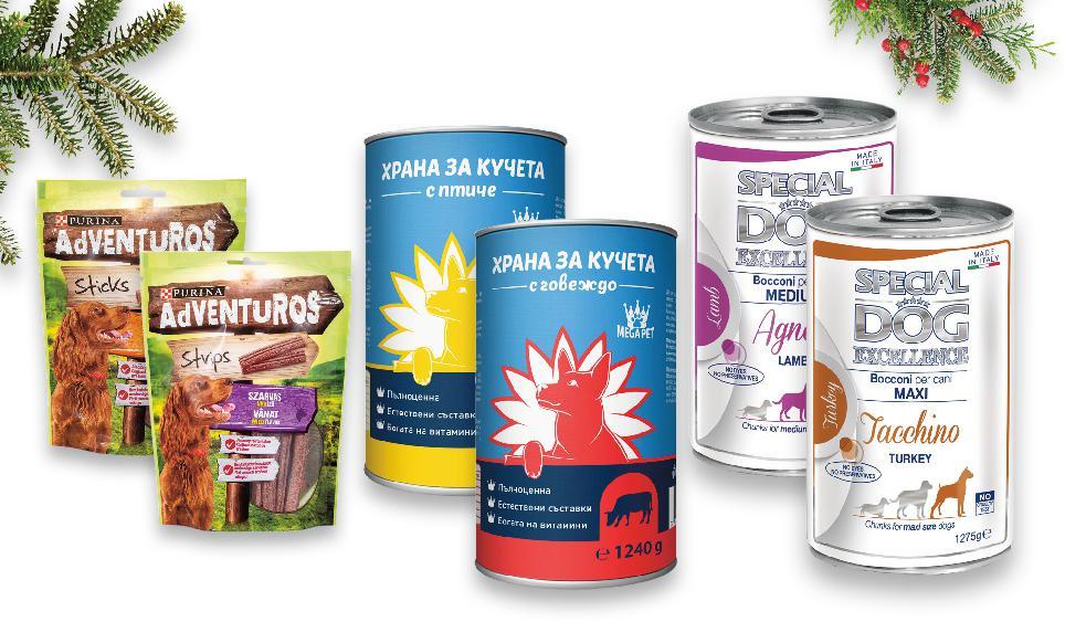 Цените са валидни за посочените на последна страница хипермаркети. Стоките се продават в количества, обичайни за едно домакинство. Всички цени са в лева с включен ДДС. Всички артикули се предлагат без декорация. Снимките са примерни. КАЧЕСТВО ЗА ЛЮБИМЕЦА. ИЗГОДНО ЗА ДЖОБА -20% 3,99 4,99 -40% 4,99 8,39 8,99 само 2,09 2,69 само само 1,24 кг 1,275 кг 3 кг 2 кг Храна за кучета с вкус на говеждо с витамини D3 и E 2 кг (1 кг = 2,00) MONGE SPECIAL DOG Храна за кучета различни видове 1,275 кг (1 кг = 3,92) DARLING Суха храна за кучета с говеждо и пиле или с пиле и пуйка 3 кг (1 кг = 3,00) MEGA PET Храна за кучета с птиче или говеждо месо 1240 г (1 кг = 2,17) ADVENTUROS Лакомство за кучета различни видове ниско съдържание на мазнини 90 - 120 г (1 кг = до 23,23) без консерванти, оцветители и добавена захар ЗА ДОМАШНИ ЛЮБИМЦИ без изкуствени оцветители S36-BG-KW46-LFT-TIER_L-1000-10 36