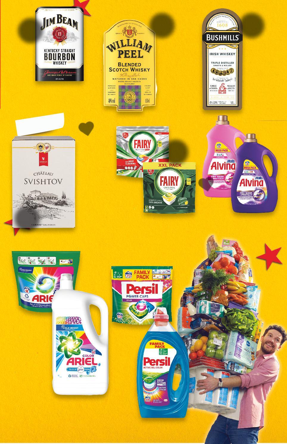 *Със звездичка са обозначени артикулите, които са специално предложение до изчерпване на наличностите. Kaufland не носи отговорност за печатни грешки. Ароматна горскиплодове 1,5 литра 1,5 литра 5 литра 1,75 литра 90-125 броя 49,99* само 21,99* само 29,99* само 14,99* само 36,99* само 15,99 само само 29,99* 37,99* само 68 / 80 / 85 пранета 1 изпиране = 0,45 / 0,38 / 0,36 лв. 45/ 58 / 62 пранета 1 изпиране = 0,67 / 0,52 / 0,49 лв. 60 / 70 пранета 1 изпиране = 0,50 / 0,43 лв. 70 пранета 1 изпиране = 0,22 лв. 100 пранета 1 изпиране = 0,30 лв. BUSHMILLS Ирландско уиски 40% vol 1,75 л (1 л = 28,57) WILLIAM PEEL Шотландско уиски 40% vol 1,5 л (1 л = 14,66) PERSIL Гел или Капсули за пране различни видове 5 л = 100 пранета или 60 - 70 бр. = 60 - 70 пранета (1 л = 6,00) ALVINA Гел за пране Deluxe Color или 2 in 1 с омекотител 3,850 л = 70 пранета (1 л = 3,90) FAIRY Таблетки за съдомиялна машина All in One, Platinum или Platinum Plus ефективност при кратки или Еко програми без предварително изплакване 90 - 125 бр. в опаковка (1 бр. = от 0,30) CHATEAU SVISHTOV Червено, бяло вино или розе различни сортове Произход: България, Дунавска равнина 5 л BIB (1 л = 3,20) ARIEL Гел или Капсули за пране гел: различни видове 4,675 л = 85 пранета, 4,4 л = 80 пранета, 3,74 л = 68 пранета, капсули: избрани видове 45, 58 или 62 бр. = 45, 58 или 62 пранета (1 л = от 6,42) JIM