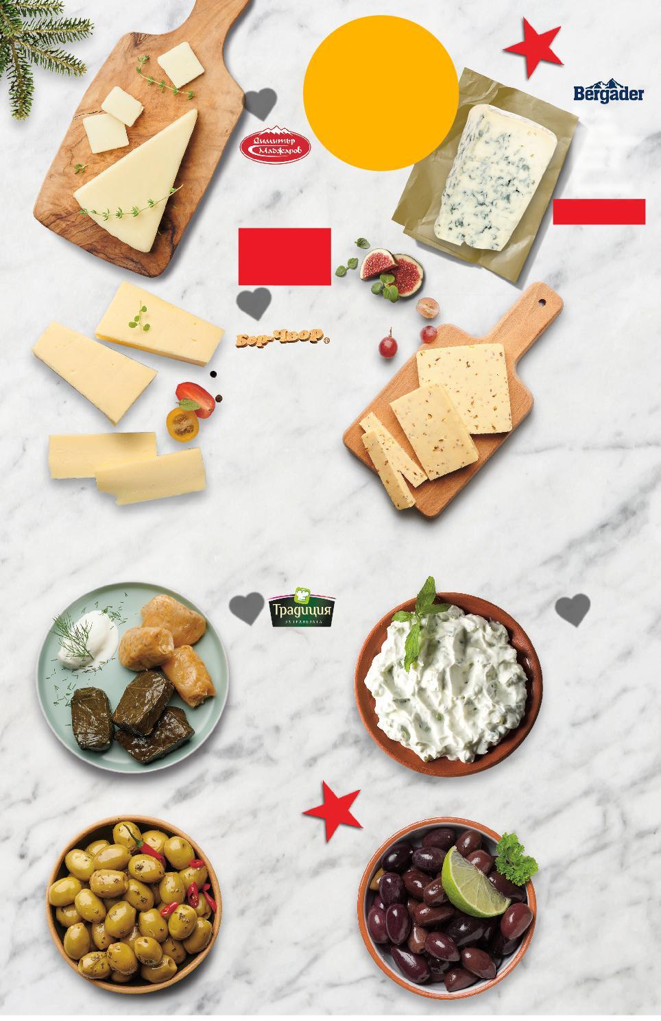 Цените са валидни за посочените на последна страница хипермаркети. Стоките се продават в количества, обичайни за едно домакинство. Всички цени са в лева с включен ДДС. Всички артикули се предлагат без декорация. Снимките са примерни. МОЖЕШ ДА ДЕГУСТИРАШ НА МЯСТО ПРОДУКТА ПРЕДИ ДА ГО КУПИШ КАЧЕСТВОТО НА СЪХРАНЕНИЕ СЕ ПРОВЕРЯВА ОТ МЕЖДУНАРОДЕН ИНСТИТУТ КАЧЕСТВЕНА СЕЛЕКЦИЯ НА ИЗГОДНИ ЦЕНИ 16,99* само 15,89* само 15,49* само -0% 12,99 само Mоцарела твърда Произход: Дания кг (1 кг = 16,99) Сирене от козе мляко кг (1 кг = 15,89) Сирене смес от краве и овче мляко кг (1 кг = 15,49) Сирене от краве мляко кг (1 кг = 12,99) СИРЕНЕ И КАШКАВАЛ ОТ ВИТРИНА С ОБСЛУЖВАНЕ S16-BG-KW46-LFT-BED2_L-1000-10 16