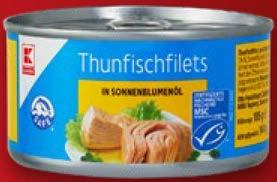 K-CLASSIC Thunfischfilets im eigenen Saft (Abtropfgewicht 150 g) oder in Sonnenblumenöl je 185 - 195-g-Dose (1 kg = 5.08 - 6.60)