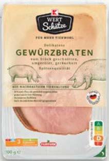 -34% 9.68 6.38 1/2 PREIS 3.19 1.59 -20% 2.49 1.99 1/2 PREIS 2.19 1.09 -25% 0.39 0.29 Mehrkornbrötchen herzhaft, aus Weizen, Roggen und Hafer Stück K-WERTSCHÄTZE Schweinebauchscheiben natur, ohne Knochen kg -26% 1.19 0.88 -26% 4.49 3.29 Kaiserfleisch1 Kasseler gekocht, zart und saftig 100 g ALMA Vorarlberger Bergkäse1 Rohmilchkäse aus Heumilch, mind. 10 Monate gereift, kräftig-würzig, 45 % Fett i. Tr. 100 g