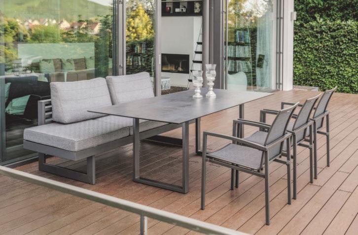 3: Ausziehtisch, Platte Keramik auf Glas dunkelgrau, Gestell Aluminium anthrazit, ca. 180 - 280 x 100 x 75 cm 08150008_17 779,Gartensessel, Textilene dunkelgrau, Gestell Aluminium anthrazit pulverbeschichtet, ca. 56 x 65 x 110 cm 21450027_01 219,Ausziehtisch, ohne Abb., Gestell Aluminium pulverbeschichtet grau, Platte Glaskeramik, ca. 90 - 180 x 90 x 75 cm 08150008_27 449,-
