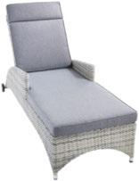 3: Gartenliege, Gestell Aluminium anthrazit, Textilene karbonfarbig, Auflagen Polyacryl seidengrau, ca. 80 x 73 x 216 cm 02160115_04 1.895,- UVP 1.599,Gegen Mehrpreis: Rückenkissen, Polyacryl seidengrau, ca. 75 x 40 x 10 - 20 cm 02160114_09 179,- UVP 159,-