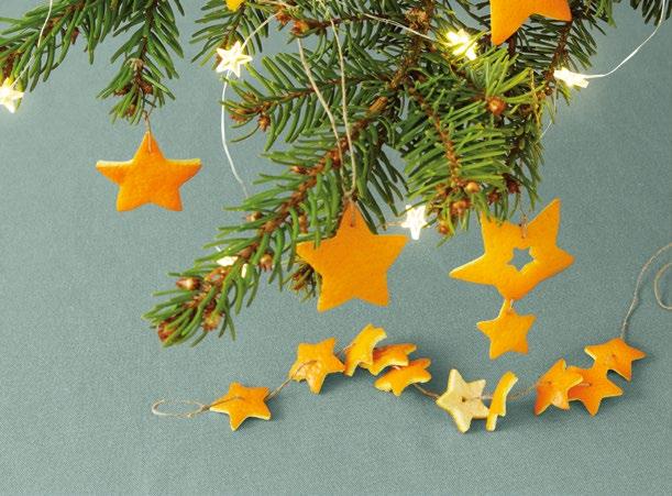 23 Необходими материали: портокали дъска за рязане нож формички за сладки – звезда игла и конец 1 Обели портокала, като внимавай да запазиш кората цяла. 2 С помощта на формичките за сладки изрежи звезди с различни размери. 3 Пробий дупки с иглата и закачи звездичките поотделно като коледни играчки или ги нанижи като гирлянда. Тази украса можеш да ползваш и догодина – не само е ефектна, но и с прекрасен аромат и грижа към природата. Коледни гирлянди от портокалови корички Виж актуалните ни седмични предложения за плодове и зеленчуци на lidl.bg