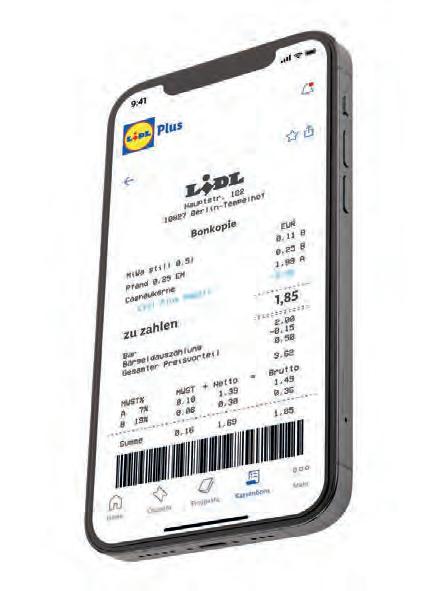 Fr., 10.2. bis Sa., 11.2 Auf Seite 44 ab Do., 9.2. Ab Seite 30 PREIS! TIEF z.B. LED-Lampen 3.99* 7.99* z.B. Matsch- und Buddelhose Ab Seite 24 AKTION -57% 1.11* UVP 2.59 I Love Milka Pralinés Je 110 g; 1 kg = 10.09 AKTION -26% 3.69* UVP 4.99 -41% -.75* 1.29 Jules Mumm Sekt Je 0,75 l; 1 l = 4.92 2.99* zzgl. -.25 Pfand Frische Macaron Herzen Je 6x 15 g; 1 kg = 33.22 Kühlung Pepsi Koffeinhaltig. Versch. Sorten. Je 1,5 l zzgl. -.25 Pfand 1 l = -.50 -40% -.88* 1.49 Im Aufsteller Im Aufsteller Gültig von Mo., 6.2. bis Sa., 11.2. Alle Produkte ab Seite 2 LIEBE SCHENKEN ZUM VALENTINSTAG • mA 41 . beFaur r i s t Valentinstag • Am 14 . Februa r i s t tnelaVigatsn 14. Februar -.79* d) -46% 1 l = 1.58 Nur gültig mit -.65* d) -49% 1 l = -.43 Nur gültig mit d) Angebot ausschließlich für Nutzer der Lidl Plus App. Es gelten die Couponbedingungen in der Lidl Plus App. Mehr Infos unter lidlplus.de AUSGABE 6/2023 LHZ · 6/2023 · ECD lidl.de Filial-Angebote: Lidl Dienstleistung GmbH & Co. KG, Bonfelder Str. 2, 74206 Bad Wimpfen. Namen und Anschrift der regional tätigen Unternehmen unter www.lidl.de/filialsuche oder 0800 4353361. Online-Angebote: Lidl Digital International GmbH & Co. KG, Stiftsbergstr. 1, 74172 Neckarsulm. Unser Unternehmen ist Bio-zertifiziert durch DE-ÖKO-006.