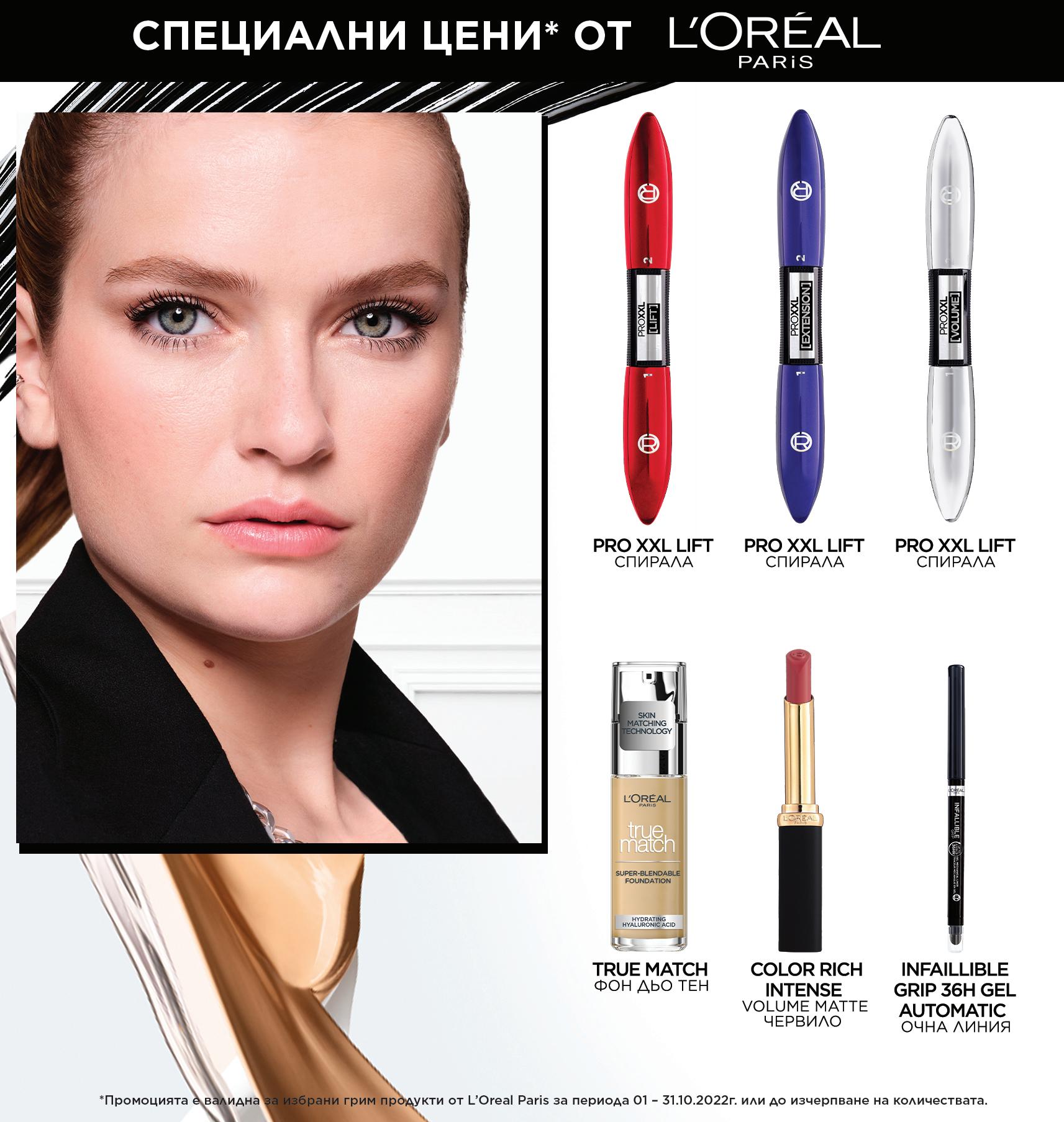 *Промоцията е валидна от 1.10 до 31.10.2022 или до изчерпване на количествата. *Всяко цветче ви носи 1 стотинка. Само с карта “LILLY CLUB” 20 2030 20 25 2520 32 40 L’Oreal Paris L Спирала за очи 1 р. азлични видове Golden Rose C L Спирала за очи 1 р. азлични видове Max Factor L I L Спирала за очи 1 р. Golden Rose олив за очи 1 р. азлични н анси Aura 3 изк ствени ми ли 1 чи т азлични видове Bourjois LU L U Спирала за очи 1 р. азлични видове NYX Professional make up U B 2I 1 чна линия и лепило за ми ли 1 р. NYX Professional make up U B L зк ствени ми ли 1 чи т азлични видове * ртик л т се предла а в определени о екти * ртик л т се предла а в определени о екти * ртик л т се предла а в определени о екти * ртик л т се предла а в определени о екти Flormar I I чна линия писец 1 р. азлични н анси 5,05 лв. 3,99лв. 27,99 лв. 19,49лв. 28,99 лв. 22,99лв. 5,09 лв. 4,05лв. 23,99 лв. 17,99лв. 9,19 лв. 7,35лв. 21,99 лв. 16,49лв. 22,99 лв. 15,49лв. 7,79 лв. 4,65лв. 35 25,99 лв. 16,89лв. +100* ЦВЕТЧЕТА LILLY CLUB +80* ЦВЕТЧЕТА LILLY CLUB +90* ЦВЕТЧЕТА LILLY CLUB