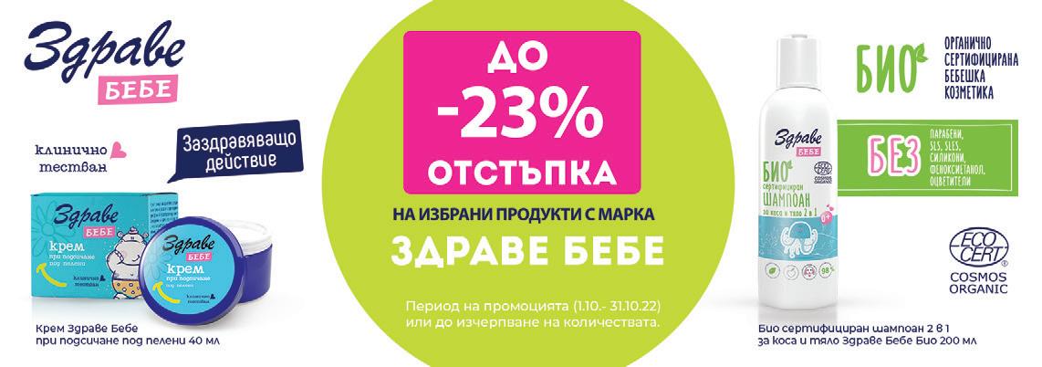 *Промоцията е валидна от 1.10 до 31.10.2022 или до изчерпване на количествата. *Всяко цветче ви носи 1 стотинка. Само с карта “LILLY CLUB” 2 20 20 19 25 20 23 Canpol омплект е е ки аспиратор за нос с накра ници Event е е ки мокри к рпички с ла ка или алое вера 2 р. Bebelan е е ки мокри к рпички 2 р. азлични видове VZK B BY рем против подсичане 100 мл Canpol Силиконов ли авник 1 р. VZK B BY осион за тяло 1 0 мл 16,99 лв. 13,59лв. 2,49 лв. 1,99лв. 1,35 лв. 1,09лв. 3,99 лв. 2,99лв. 9,29 лв. 7,39лв. 6,49 лв. 4,99лв. 1,89лв. 4,69 лв. 3,95лв. 15 20 Canpol Силиконова зал алка чере ка 0 мес. или 1 мес. 4,85 лв. 3,85лв. Бочко рем против подсичане 100 мл 4,99лв. Бочко спокоява ел с арника мес. 0 мл 3,99лв.