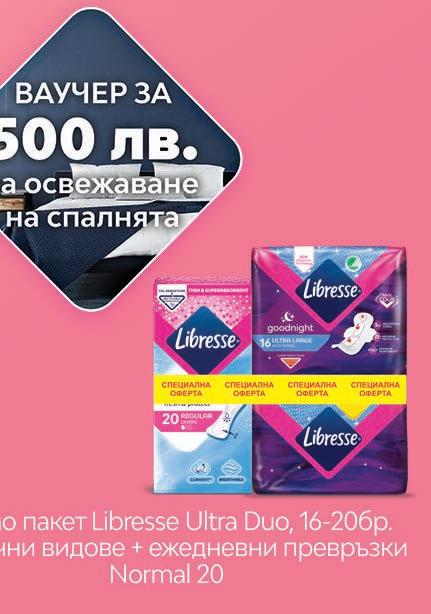 21 22 30 26 18 23 Always U C амски превр зки от 10 до 20 р. азлични видове Carefree едневни превр зки р. азлични видове EveryDay амски превр зки 1 р. азлични видове Be Free едневни превр зки пам чни или копринени 20 р. Tampax L C ампони 1 р. азлични видове O.B. C ампони 1 р. азлични видове 6,35 лв. 4,89лв. 4,79лв. 4,89 лв. 3,39лв. 1,75лв. 1,29лв. 7,75 лв. 6,35лв. 5,59 лв. 4,29лв. 20 20 Palomita UBL C амски превр зки 20 р. Bella Y едневни превр зки 20 р. 3,19 лв. 2,55лв. 1,49 лв. 1,19лв. 51 Tena L Y роло ични превр зки или 10 р. 4,69 лв. 2,29лв. 5,49лв. *Промоцията е валидна от 1.10 до 31.10.2022 или до изчерпване на количествата. *Всяко цветче ви носи 1 стотинка. Само с карта “LILLY CLUB” +15* ЦВЕТЧЕТА LILLY CLUB +10* ЦВЕТЧЕТА LILLY CLUB +10* ЦВЕТЧЕТА LILLY CLUB +15* ЦВЕТЧЕТА LILLY CLUB +30* ЦВЕТЧЕТА LILLY CLUB