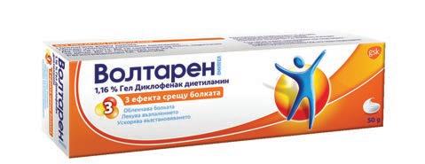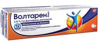 Януари Лекарствен продукт без лекарско предписание Волтарен Форте 2,32% гел, 50g Волтарен Емулгел 1,16% гел, 50g Волтарен Форте 2.32% гел е лекарствен продукт без лекарско предписание за възрастни и юноши над 14 години. Съдържа диклофенак диетиламин. Преди употреба прочетете листовката. A0129/19.07.2018 CHBA/CHVOLT/0019/18d Търговски марки притежавани или лицензирани от група компании GSK. © 2018 Групата компании GSK или техен лицензодател. Волтарен