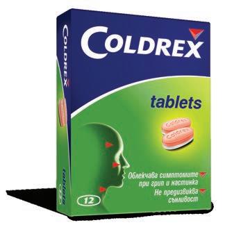 Януари Лекарствен продукт без лекарско предписание Фармацевтите на Ви препоръчват Coldrex таблетки 12бр. Coldrex таблетки 24бр. За възрастни и деца над 12г. Преди употреба прочетете листовката № ИАЛ A-0198/01.08.2019 Облекчава симптомите при грип и простуда Понижава високата температура Облекчава болката при възпалено гърло Съдържа парацетамол. Бързо и ефективно действие. На много достъпна цена. 0.05%, 10 мл 0.1%, 10 мл Ксилометазолин капки за нос Ксилометазолин капки за нос За деца над 2 години За възрастни и деца над 12 години