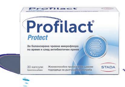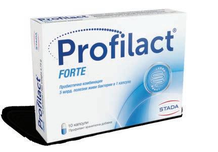 Профилакт® Форте 10 капсули Профилакт® Протект 30 капсули За възстановяване на чревния баланс Подходящ за антибиотичен прием и нарушен чревен баланс Комбинация от 4 стомашни-устойчиви пробиотични щама. За балансирана чревна микрофлора по време и след антибиотичен прием Подходящ за възрастни и деца над 3 години Хранителна добавка Без консерванти Подходящ за бременни и кърмещи жени Без глутен Т222200231, 1/25/2022 Разнообразни 9 пробиотични щама в много висока доза - 10 млрд. в капсула Подходящ по време на и след антибиотичен прием Жизнеспособни пробиотични щамове подходящи за дългосрочна употреба Подходящ за възрастни и деца над 3 години Произведен под GMP стандарт