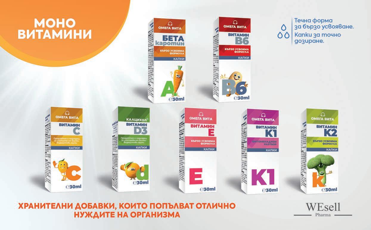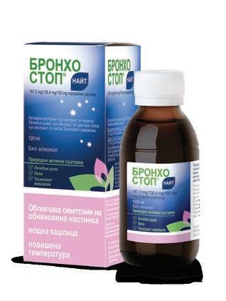 Фармацевтите на Ви препоръчват Лекарствен продукт без лекарско предписание УПСАРИН С Осцилококцинум Лекарствен продукт без лекарско предписание за възрастни и деца над 12 години. Съдържа ацетилсалицилова киселина. Преди употреба прочетете листовката. Рег. № 0155/ 01.08.2019 г. Винаги с Вас в подходящия момент! При болка и повишена температура Грип, настинка Веднага Осцилококцинум Температура, втрисане, мускулни болки… Още при първи симптоми, реагирайте! Осцилококцинум помага да преборите грипа и настинката още при първи симптоми. Бронхостоп Найт перорален разтвор 120 мл Бронхостоп сироп 150 мл HOBO Облекчава нощна кашлица, ранни симптоми на настинка и леко повишена температура. Растителен лекарствен продукт без рецепта за възрастни и деца от 4 години. Преди употреба, прочетете листовката. Рег. № А 0177 / 26.08.2022 г. За ВСЯКА КАШЛИЦА при простудни заболявания: облекчава дразненето в гърлото при суха кашлица подпомага отхрачването при влажна кашлица Лекарствен продукт за възрастни и деца над 4 години. Съдържа градинска мащерка и лечебна ружа. Преди употреба прочетете листовката. А 212/14.09.2017 г.