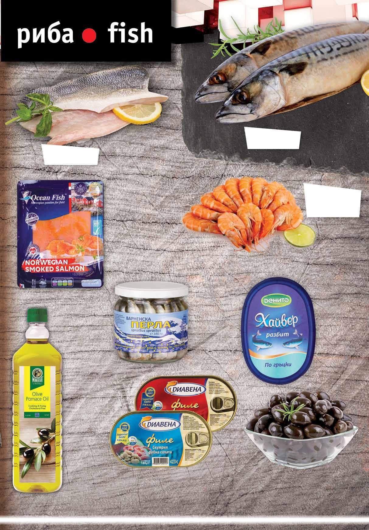 14.39 -37% 8 99 лв|бр 3.89 -25% 2 89 лв|бр 9.49 -26% 6 99 лв|бр 4.99 -22% 3 89 лв|бр 11.99 -25% 8 99 лв|кг 3.59 -25% 2 69 лв|бр 99 лв|КГ 41.99 -28% 29 10.99 -27% 7 99 лв|кг 99 лв|КГ 26.99 -29% 18 Маслиново масло от маслиново кюспе MINERVA 1 л Разбит хайвер ДЕНИТО различни видове 160 г Натурални маслини Регина екстра насипни от щандова витрина Сьомга филе OCEAN FISH пушена 100 г Скумрия филе ДИАВЕНА в доматен сос; рибна салата 180 г Мариновани шпроти ВАРНЕНСКА ПЕРЛА буркан, 340 г Скумрия чистена от щандова витрина* Лаврак филе от щандова витрина* Скариди бланширани от щандова витрина* 7ТВ „Фантастико” не носи отговорност за допуснати печатни грешки. Количествата са лимитирани! Предложенията са валидни до сряда 22.00ч. на 19.10.2022 г. Продуктите се предлагат в следните филиали: Ф6 район Студентски, бул. Г.М. Димитров №77; Ф7 жк Овча купел 1, ул. Монтевидео №98; Ф11 жк Хаджи Димитър, ул. Васил Кънчев/ул. Баба Вида №29; Ф14 гр. Ботевград, ул. Витоша 1А; Ф16 жк Люлин 6, бул. Джавахарлал Неру №26А; Ф17 жк Надежда 3, бул. Хан Кубрат №26, до бл. 301; Ф18 жк Стрелбище, ул. Нишава №138; Ф19 кв Бояна, бул. Ал. Пушкин №64; Ф21 жк Младост 4, ул. Д-р Атанас Москов №15; Ф22 Студентски град, ул. Акад. Борис Стефанов №22; Ф28 жк Гео Милев, ул. Коста Лулчев №52, в сградата на Sky City Mall; Ф30 кв Драгалевци, бул. Черни връх №204; Ф34 жк Хаджи Димитър, ул. Макгахан №81; Ф36 жк Дървеница, бул. Св. Климент Охридски №15; Ф38 жк Овча купел, ул. Любляна №42А; Ф39 жк Разсадника – Коньовица, ул. Хъшове №4; Ф40 жк Гео Милев, ул. Николай Коперник №27; Ф41 гр. Елин Пелин, ул. Витоша №7; Ф42 жк Младост 1, бул. Йерусалим №22; Ф43 кв. Манастирски ливади, ул. Пирин №51А Ф44 гр. Банкя, кв. Изгрев, ул. Стефан Стамболов №138; Ф45 гр. Перник, ж.к. Изток, ул. Юрий Гагарин №52.