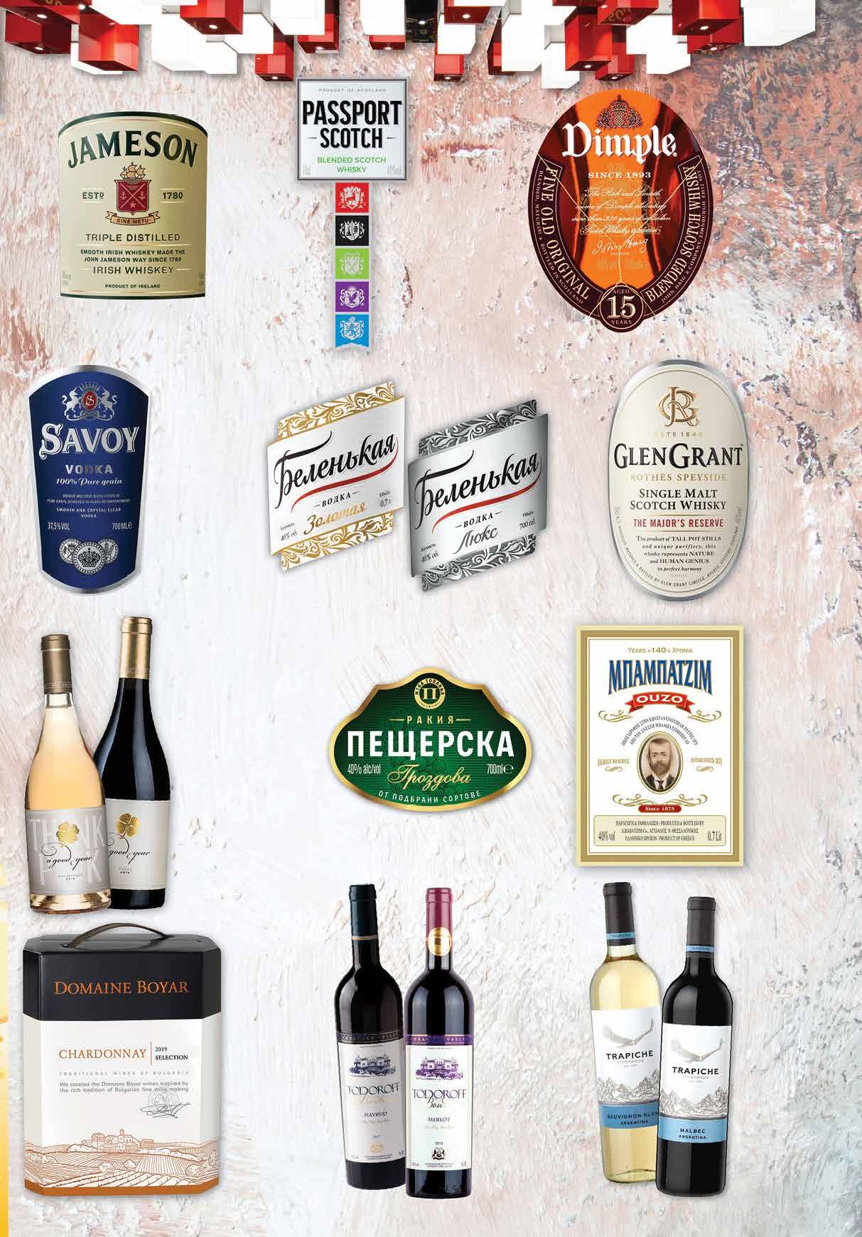 13.99 -28% 9 99 лв|бр мерло 13.99 -28% 9 99 лв|бр maвруд 10.99 -22% 8 49 лв|бр 99 лв|бр 42.99 -32% 28 99 лв|бр 77.99 -25% 57 99 лв|бр 19.99 -30% 13 99 лв|бр 19.99 -30% 13 99 лв|бр златна 16.49 -21% 12 99 лв|бр люкс 16.49 -21% 12 99 лв|бр 37.49 -33% 24 13.49 -33% 8 99 лв|бр 11.49 -26% 8 49 лв|бр 99 лв|бр 24.49 -42% 13 99 лв|бр малбек 16.79 -22% 12 99 лв|бр совиньон 16.79 -22% 12 Ирландско уиски JAMESON 1 л Вино Совиньон Блан; Малбек TRAPICHE произход Аржентина 750 мл Шотландско уиски GLEN GRANT Single Malt 700 мл Шотландско уиски PASSPORT 700 мл Узо МПАМПАТZIM 700 мл Водка SAVOY 700 мл Водка БЕЛЕНЬКАЯ Золотая; Люкс 700 мл Гроздова ракия ПЕЩЕРСКА 700 мл Вино червено TODOROFF Boutique различни видове 750 млВино Каберне Совиньон; Шардоне DOMAINE BOYAR bag-in-box 3 л Шотландско уиски DIMPLE 15 годишно 700 мл Вино GOOD YEAR различни видове 750 мл 17ТВ „Фантастико” не носи отговорност за допуснати печатни грешки. Количествата са лимитирани! Предложенията са валидни до сряда 22.00ч. на 19.10.2022 г.