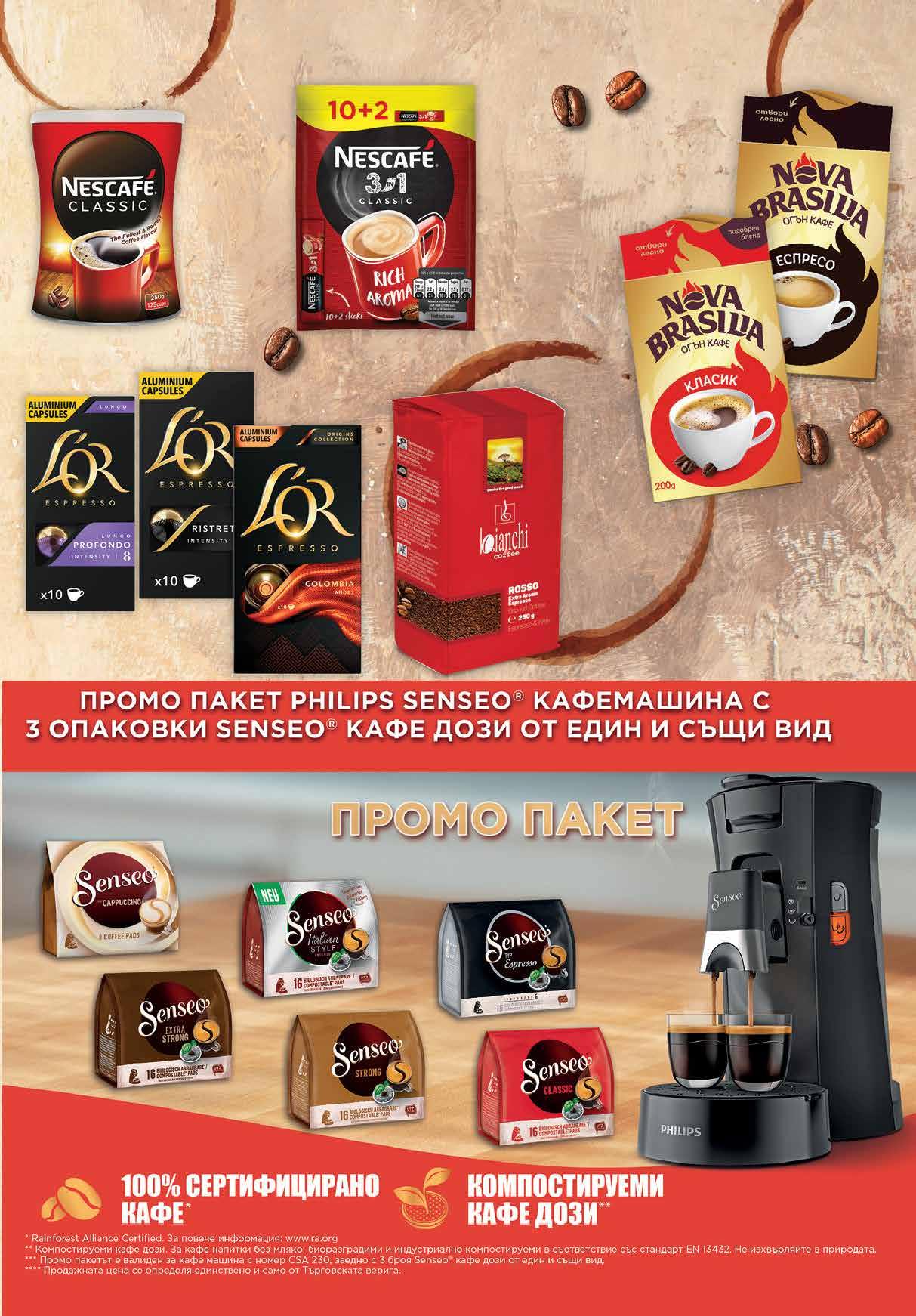 4.29 -30% 2 99 лв|бр 14.69 -38% 8 99 лв|бр 5.89 -22% 4 59 лв|бр 4.09 -39% 2 49 лв|бр 9.49 -21% 7 49 лв|oп origins 8.99 -27% 6 49 лв|oп 00 лв|пп129 Мляно кафе NOVA BRASILIA различни видове 200 г Разтворимо кафе NESCAFE Classic 250 г Кафе капсули L OR различни видове 10 бр в опаковка *съвместими със система Nespresso Кафе BIANCHI ROSSO мляно 250 г NESCAFE 3 в 1 Classic 10 бр + 2 бр х 16.5 г Промо пакет кафемашина + 3* опаковки капсули *от един и същи вид *Цената на пакета e валидна до 30.11.2022г. 13ТВ „Фантастико” не носи отговорност за допуснати печатни грешки. Количествата са лимитирани! Предложенията са валидни до сряда 22.00ч. на 19.10.2022 г.
