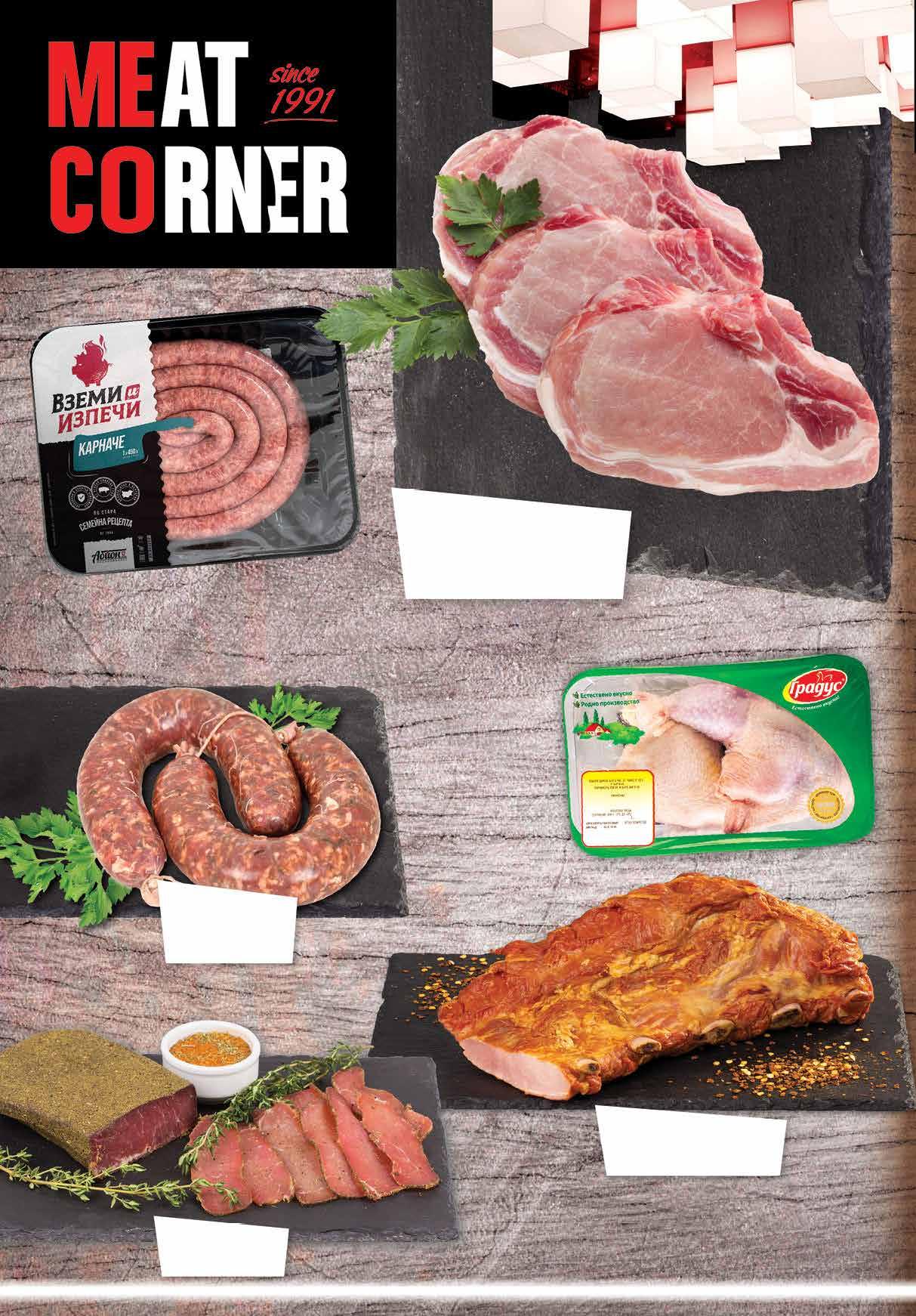 6.29 -23% 4 79 лв|бр 99 лв|кг 49.99 -28% 35 49 лв|кг 16.99 -26% 12 12.99 -23% 9 99 лв|кг 7.69 -28% 5 49 лв|кг 8 49 лв|кг Филе Елена КФМ насипно от щандова витрина Карначе АБЙОН охладено тарелка, 450 г Суров суджук говежди насипен от щандова витрина МК БРАТЯ РАДЕВИ Пилешки бутчета с част от гърба ГРАДУС охладени тарелка Свински котлет насипен от щандова витрина* *Цената не важи за предварително опаковано месо Ребра свински варено-пушени насипни от щандова витрина ЛАЛОВ И ВАЧЕВ 6 Продуктите се продават в количества, обичайни за едно домакинство. Декорацията към продуктите не е включена в тяхната цена. ТВ „Фантастико“ си запазва правото на промяна в цените.