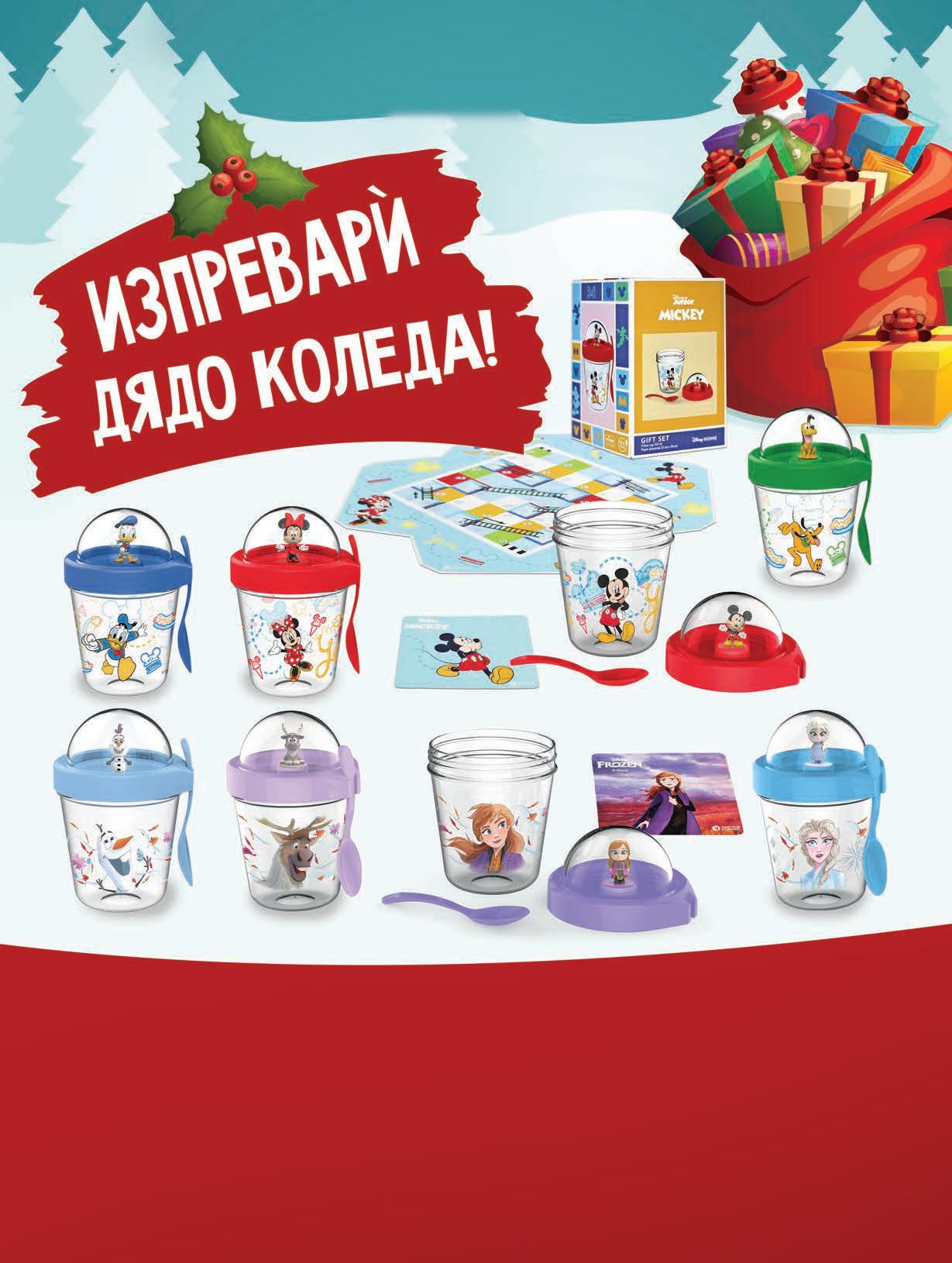 1429лв. 2199лв. без ДДС 1715 лв. цена с ДДС -35% DISNEY ПОДАРЪЧНИ КОМПЛЕКТИ • Висококачествена чаша, изработена от тритан, с лъжичка и капак с 3D фигурка на Disney герой. Вместимост: 350 ml; • Игрално поле за настолни игри; Зарче тип „направи си сам“; • Книжка за оцветяване, разположена от вътрешната страна на опаковката; Подложка за чаша. 6015180175 - ELSA 6015180176 - ANNA 6015180177 - OLAF 6015180178 - SVEN 6015180171 - MICKEY 6015180172 - MINNIE 6015180173 - DONALD 6015180174 - PLUTO